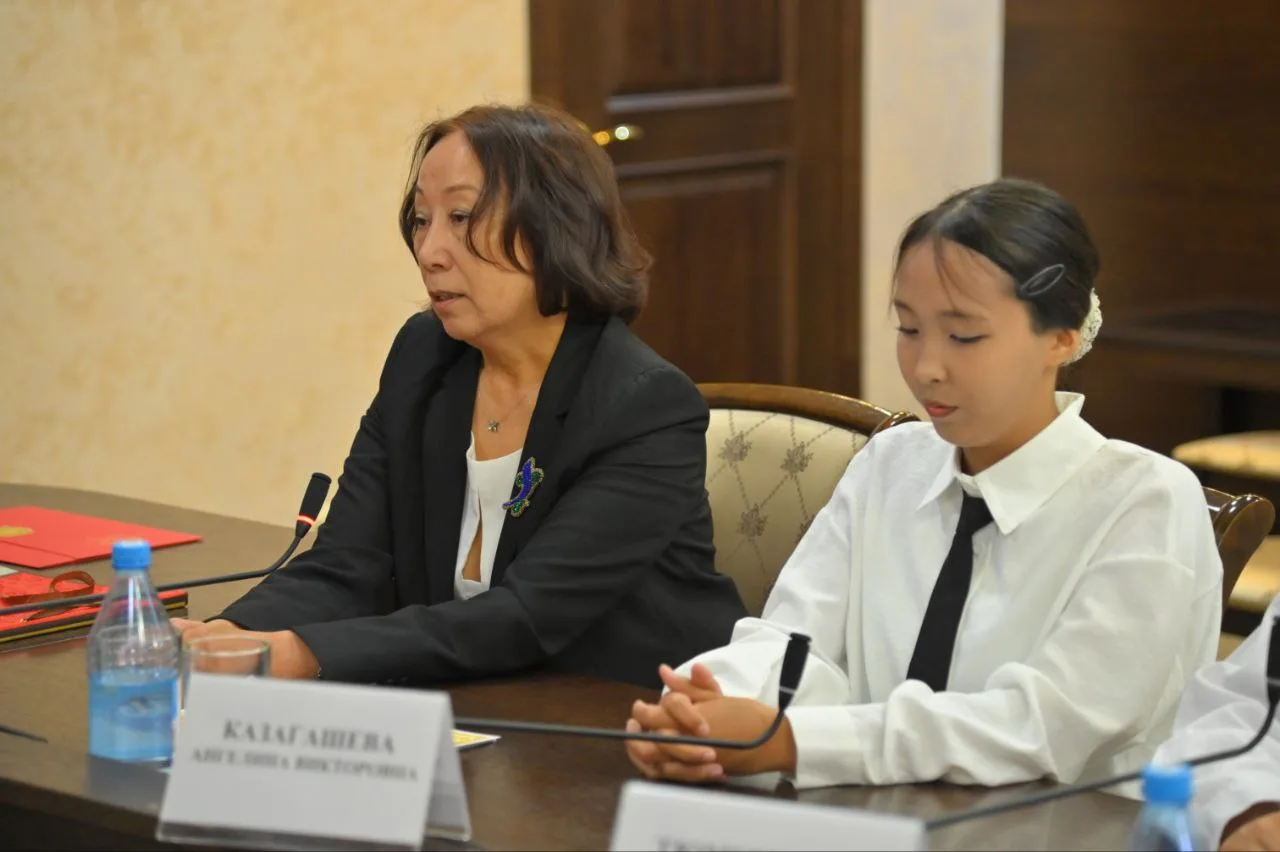 Вручил государственные награды. Медали «Трудовая доблесть Хакасии» удостоена учитель географии Алла Михайловна Майнагашева.