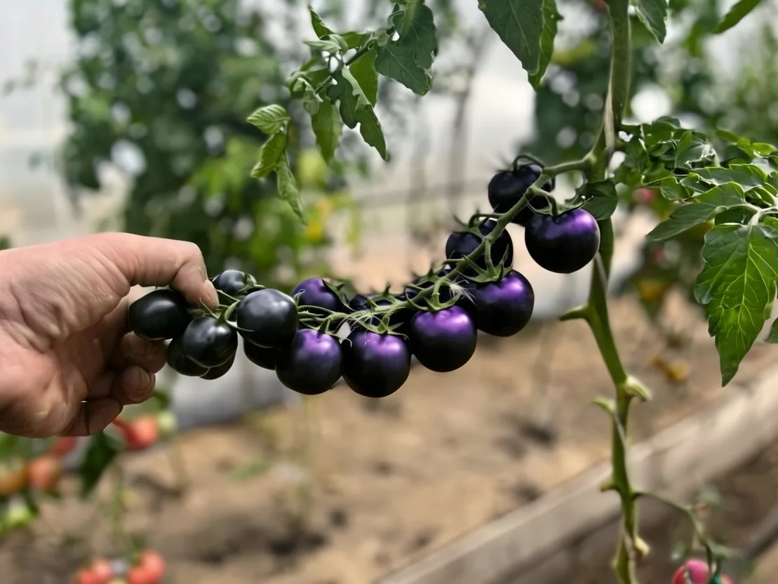 PS. Томаты на верхнем фотораскрашены в фоторедакторе ( насыщенные антоциановые томаты существуют) на нижнем оригинал - Мускат от Агрос.