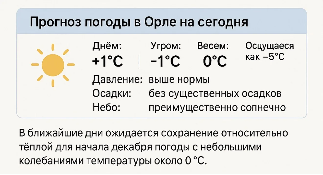 В ближайшие дни сохранится относительно тёплая для начала декабря погода с колебаниями около 0°C.
