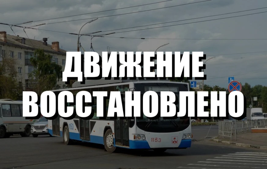 Как сообщила мэрия, движение троллейбусов на «Гипсовом комбинате», прерванное днём 7 ноября из-за обрыва контактной сети, полностью восстановлено.
