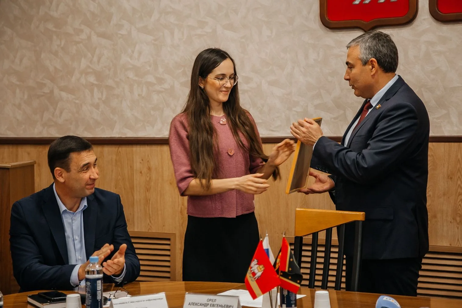 Совещание началось с приятного момента: глава округа Александр Орел передал начальнику управления ЖКХ Алене Майоровой паспорт готовности к отопительному периоду 2025-2026 годов.