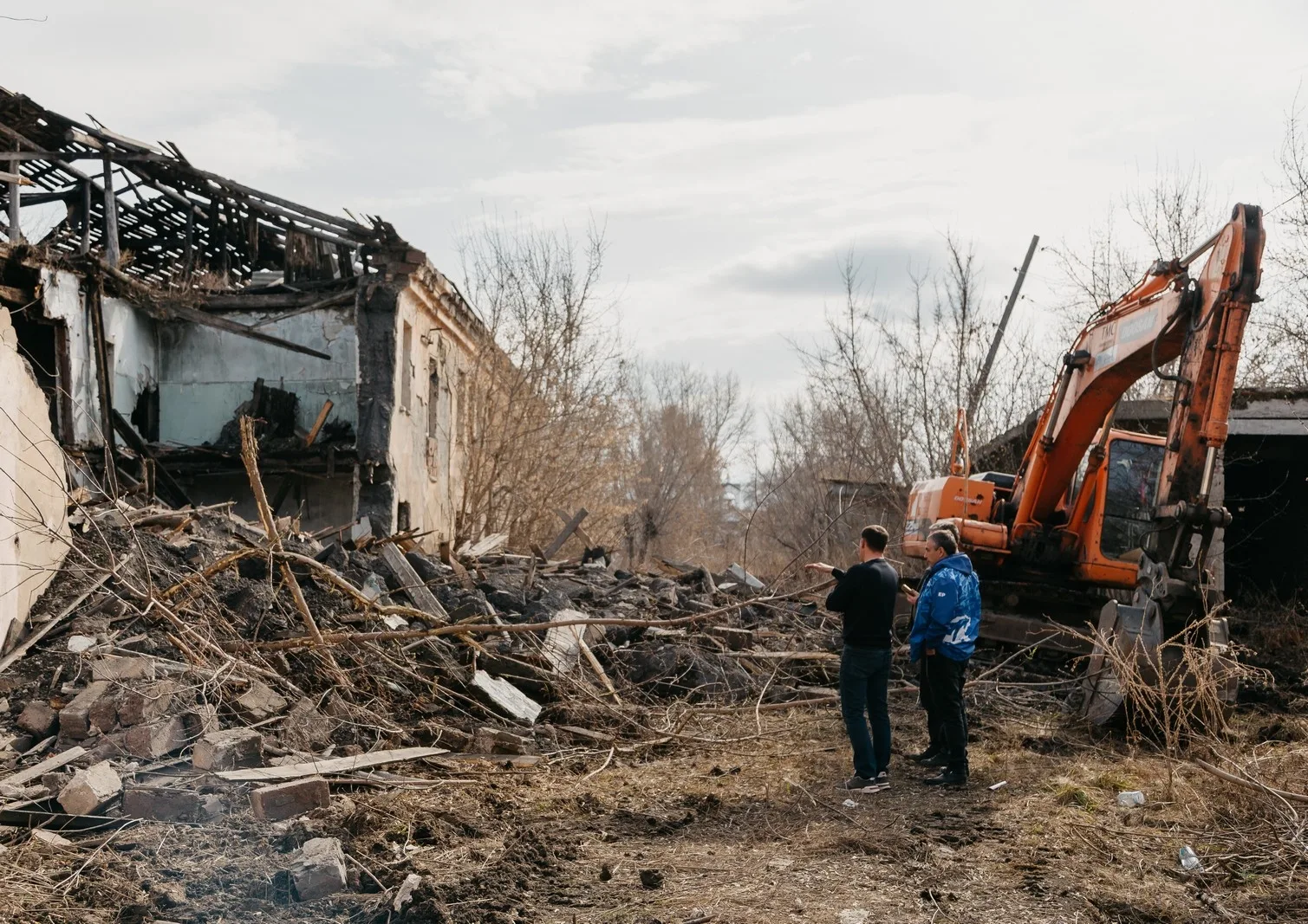6 апреля начался снос здания старой детской поликлиники по улице 50 лет Октября поселке Роза.