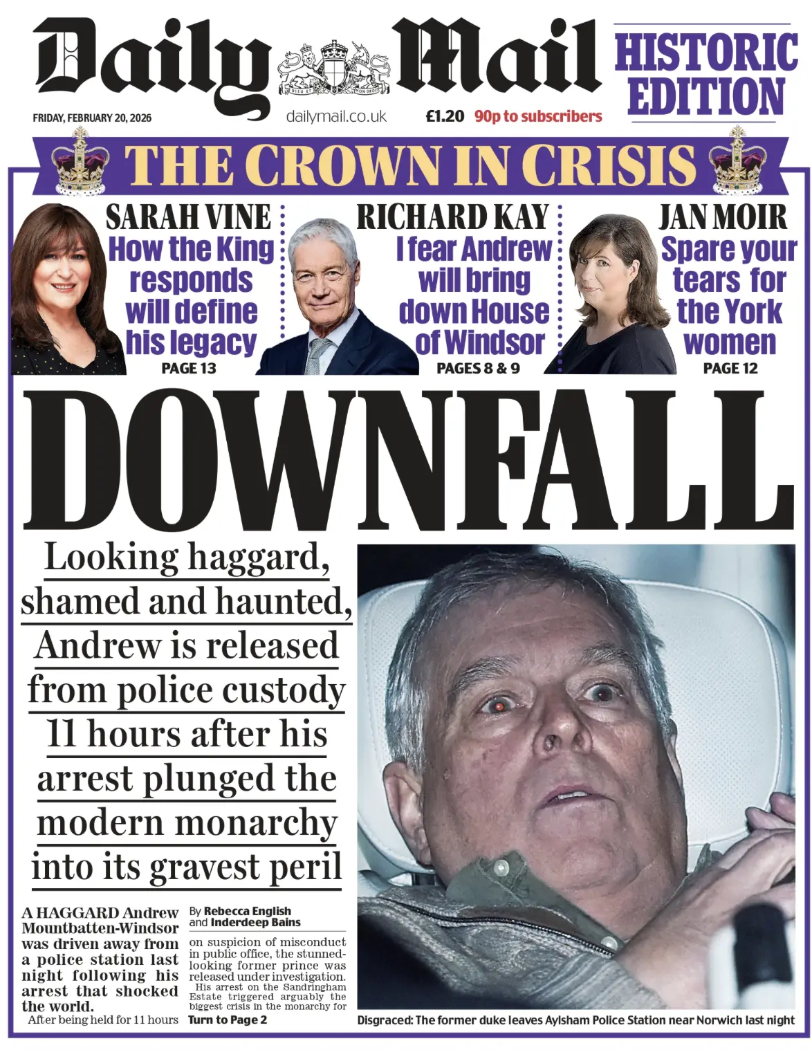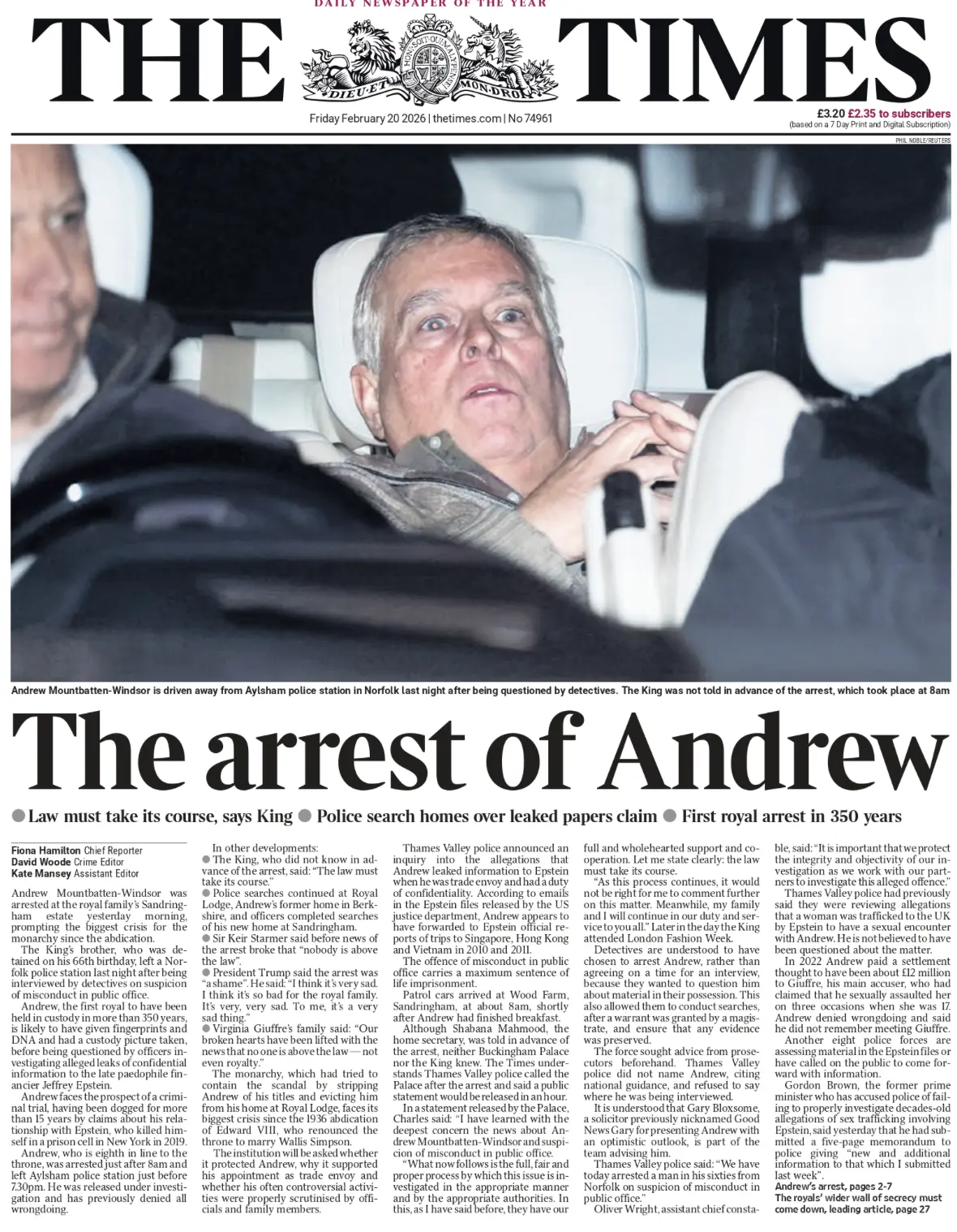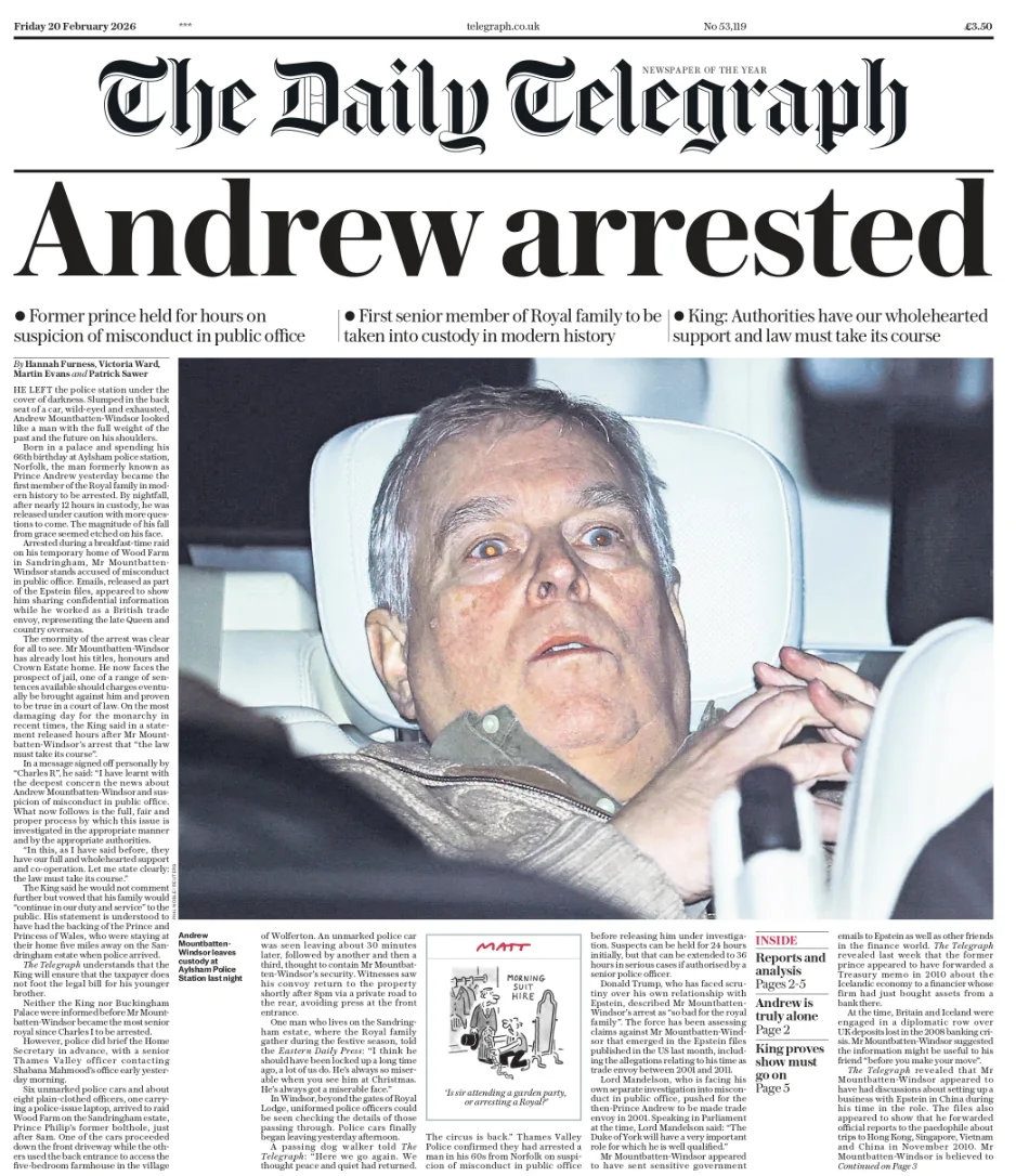 The Times представила, как вчера выглядел приход полиции к бывшему принцу Эндрю, непутевому братцу британского королька.
