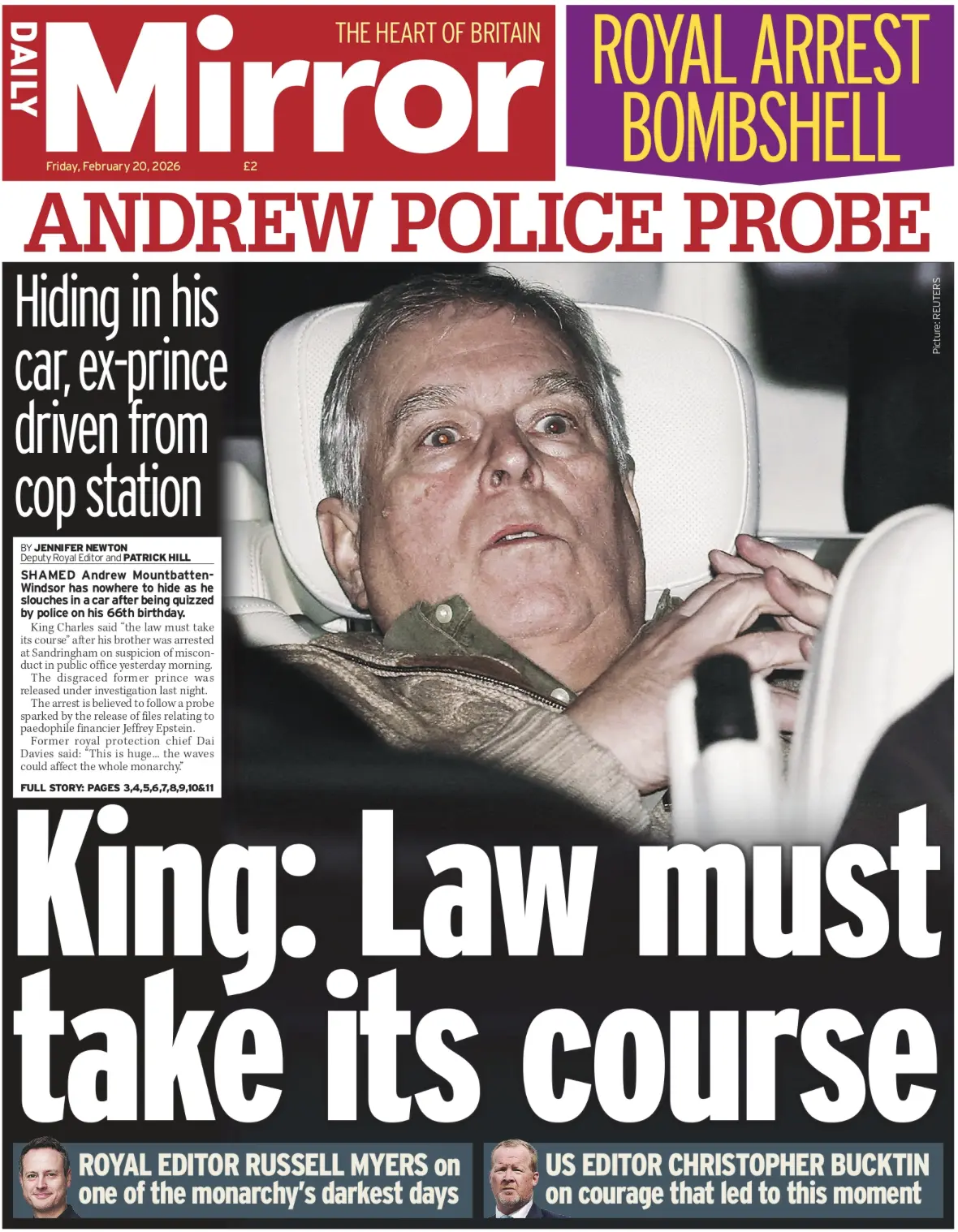 Я на днях обращал внимание на то, что фотография принца-извращенца Эндрю, лежащего в полицейской машине и с ужасом взирающего в пустоту, была на всех первых полосах британских газет.