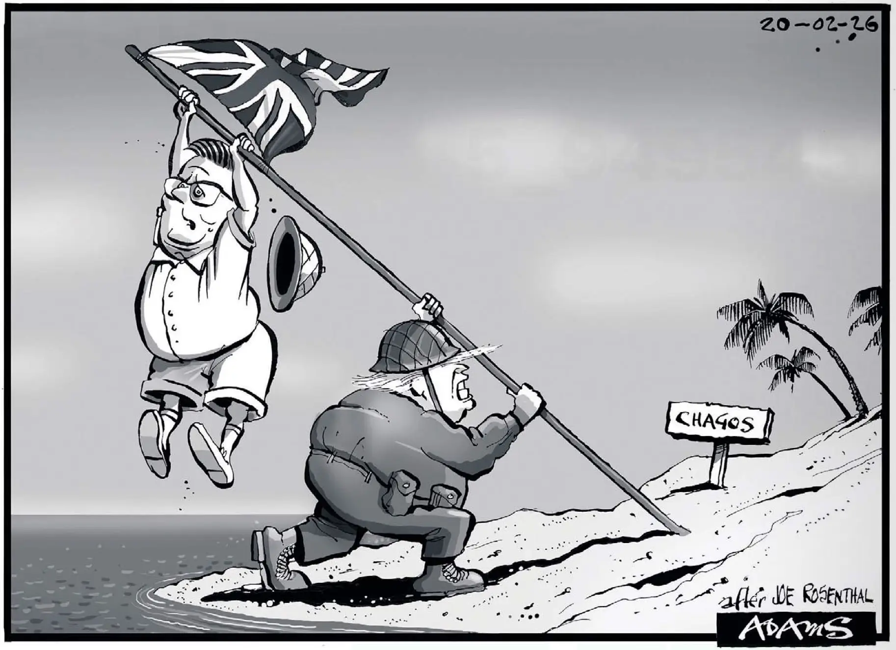Вот The Daily Telegraph и иллюстрирует эту ситуацию соответствующим образом. Теперь получается, что Трамп водружает на Чагосе британский флаг, который усиленно пытается сорвать Стармер. Время удивительных кретинов в британской власти!