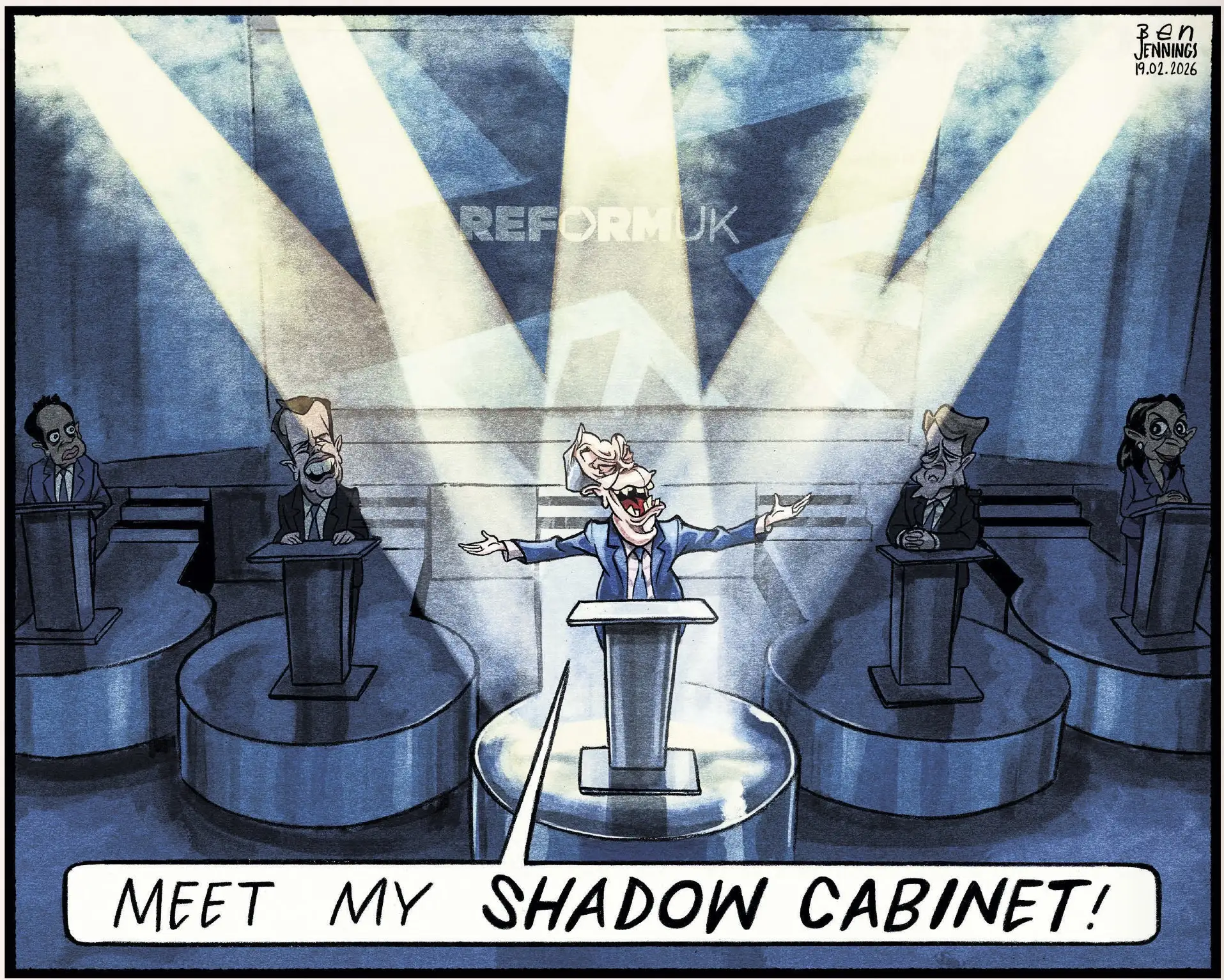 «Встречайте мой теневой кабинет!» The Guardian довольно метко передала атмосферу презентации теневого правительства Найджела Фараджа. Какие-то серые личности из числа сбитых летчиков Консервативной партии совершенно терялись на фоне лидера партии Reform UK.
