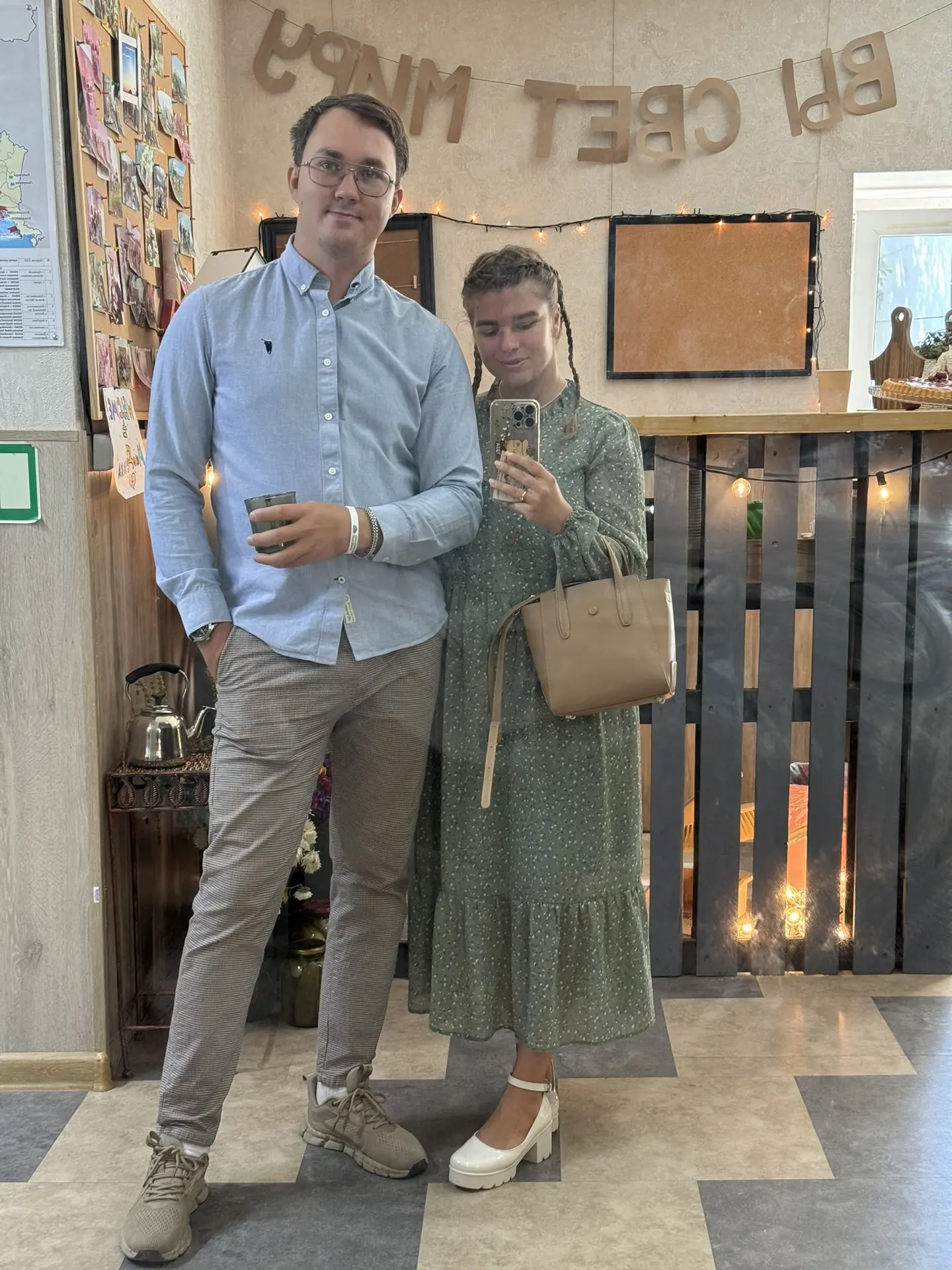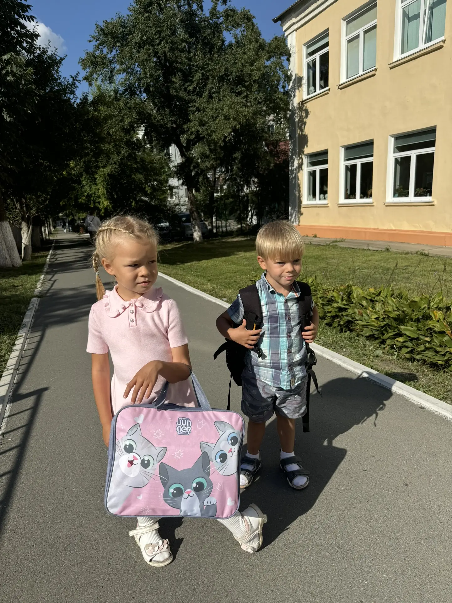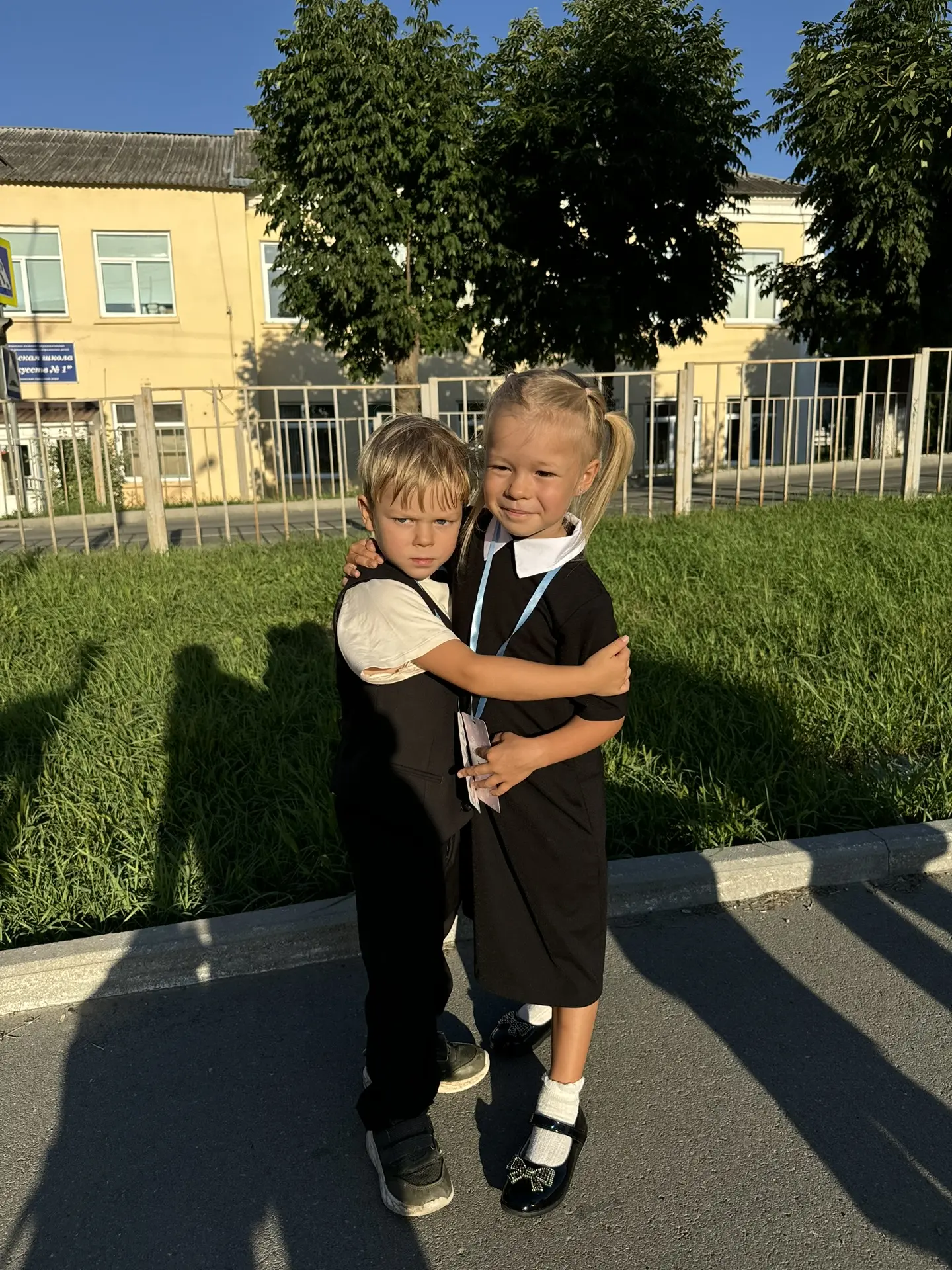Наши почти школьники,отправились на одно точку к школе,у Эмилии эмоций после урока миллион,рассказывала,как ее отвели не в тот класс,перепутали,а Давид,как настоящий мужчина молчал,сказала что все прошло хорошо и на этом все