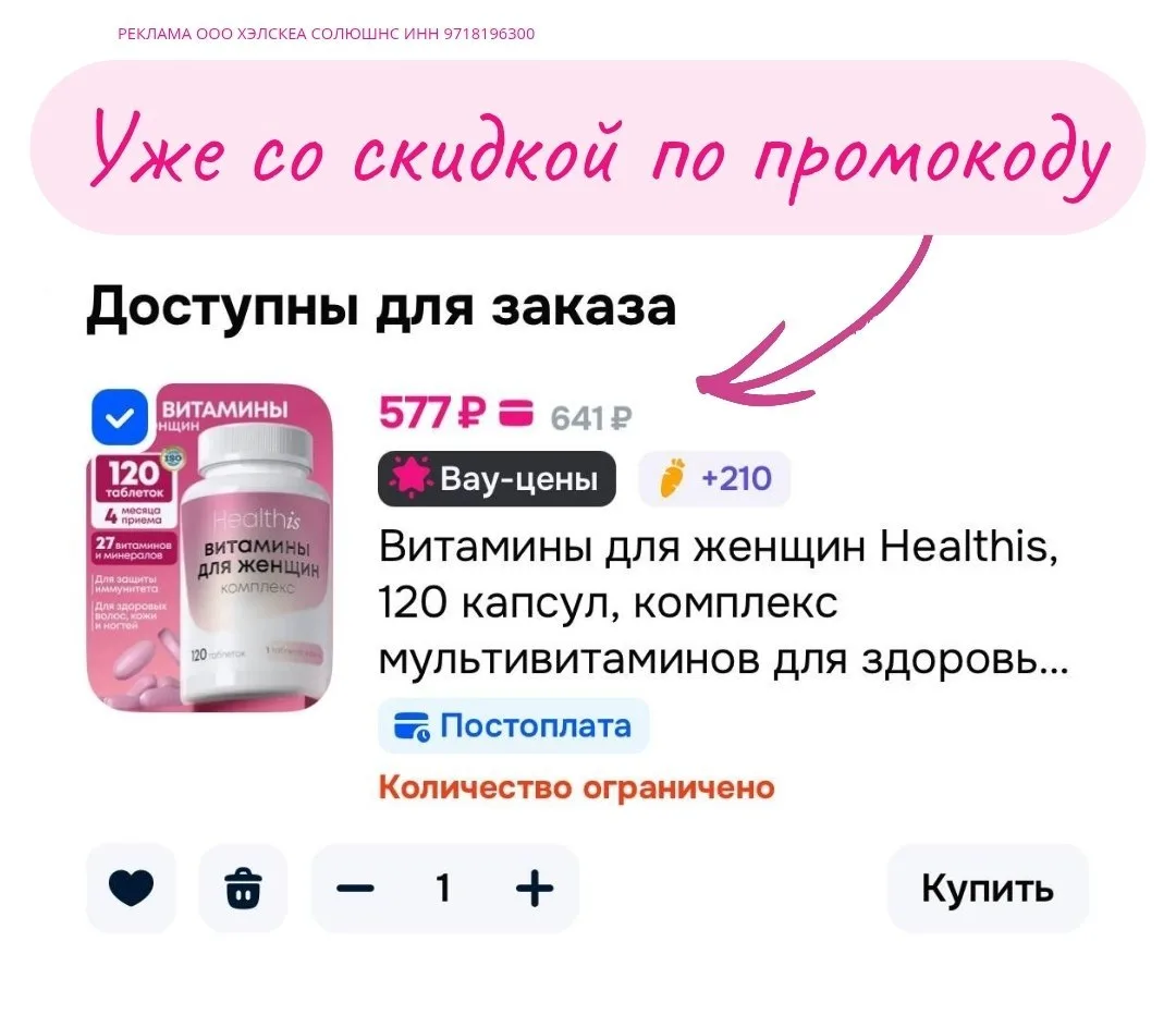 ✅ B463C4783253 — скидка 15% на первый и все повторные заказы Healthis на Ozon