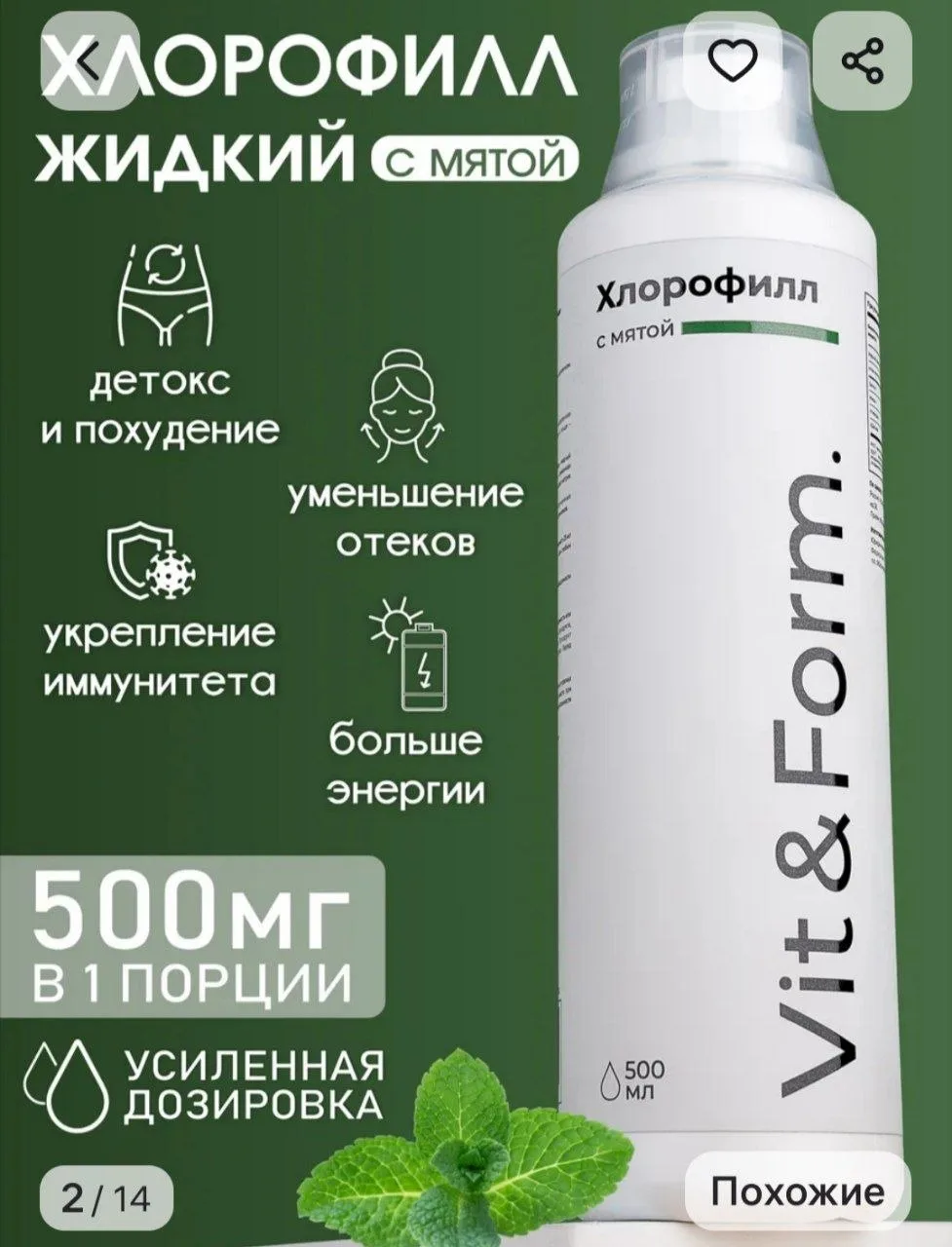Хлорофилл Жидкий Пищевой Vit&Form.