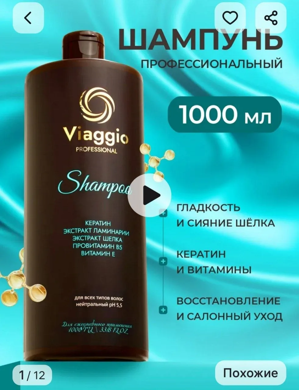 Шампунь женский с кератином профессиональный 1000 мл Viaggio