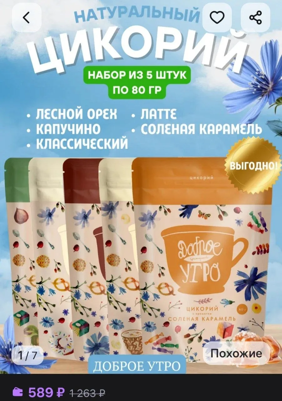 Цикорий растворимый натуральный 5 вкусов 80 гр Доброе утро