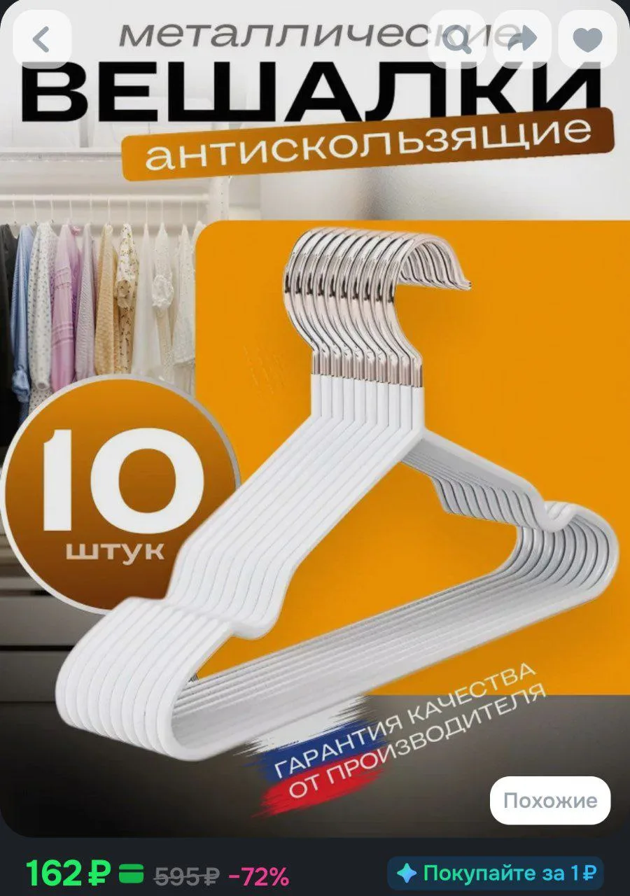 Вешалка плечики для одежды металлические, антискользящие, набор 10 шт.
