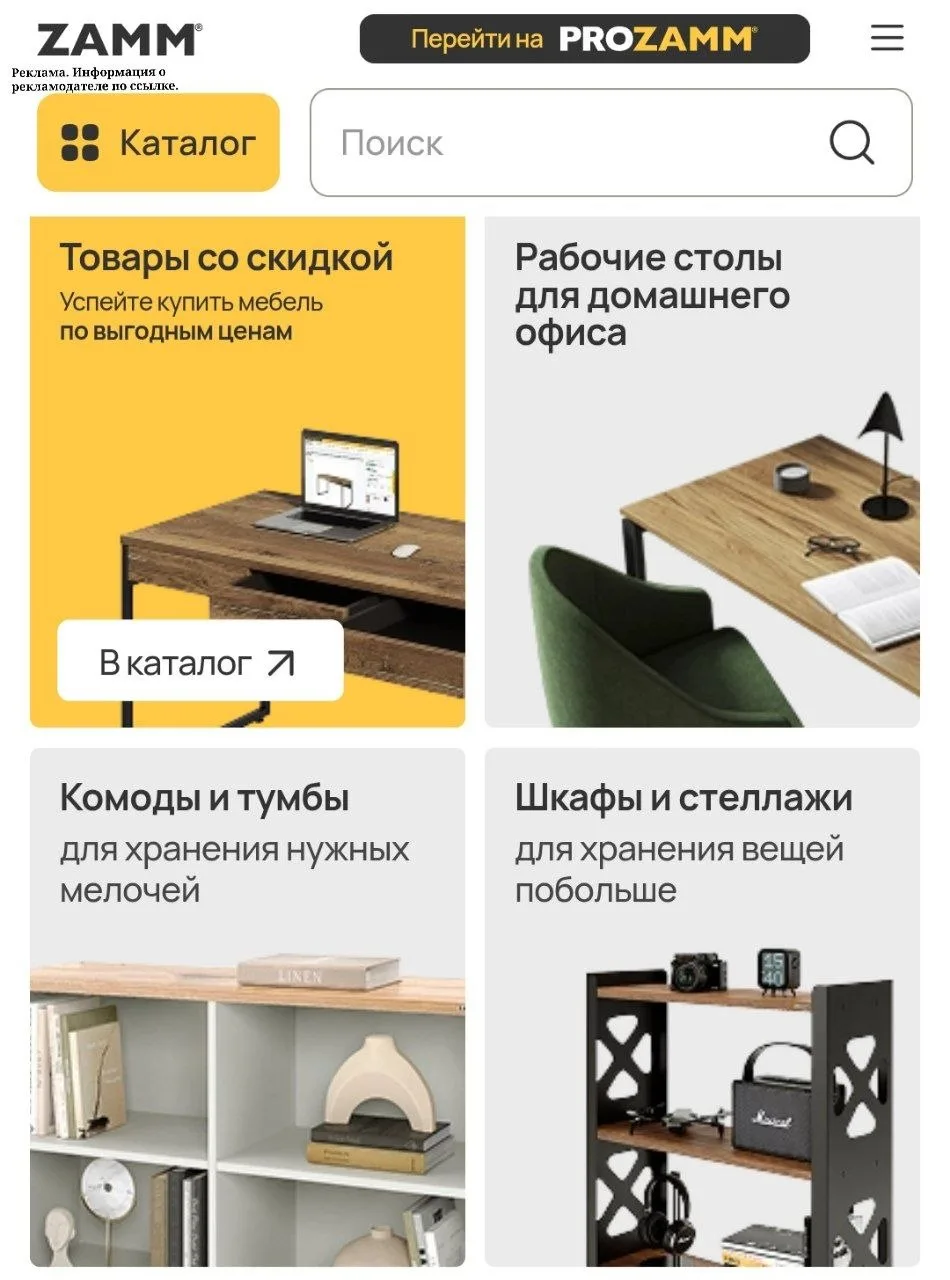 В интернет-магазине Zamm огромный выбор мебели на металлокаркасе: столы, корпусная мебель, стеллажи, полки и многое другое. Более 300 000 наименований — найдёшь то, что подойдёт именно тебе! 📐
