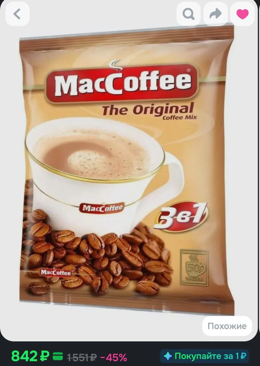 Кофейный напиток МасСoffee Оригинал, 3 в 1, 50 шт