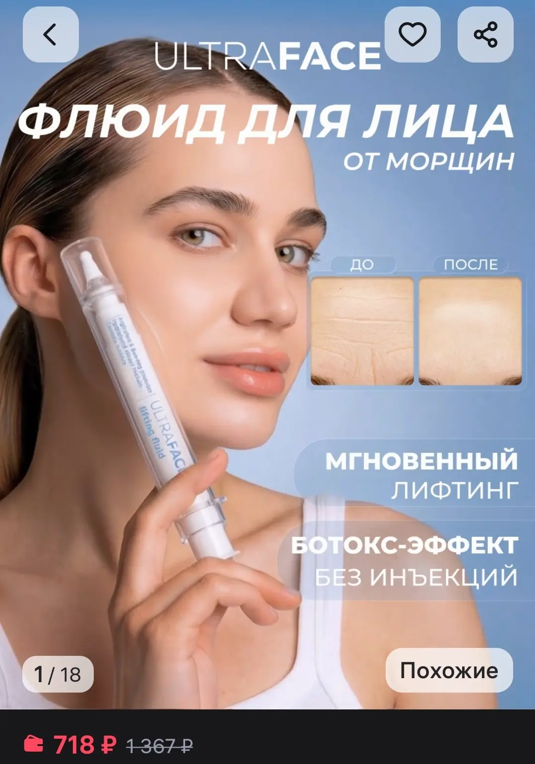Крем нейрофлюид для лица с пептидами против морщин UltraFace