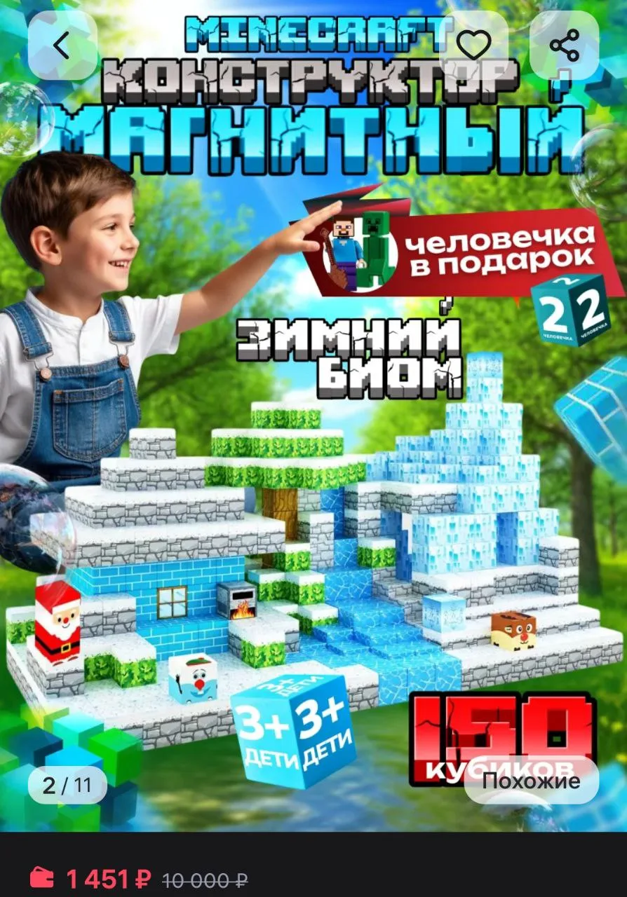 Для детей от 3 лет, мощные магниты, 150 деталей, звуки как в игре