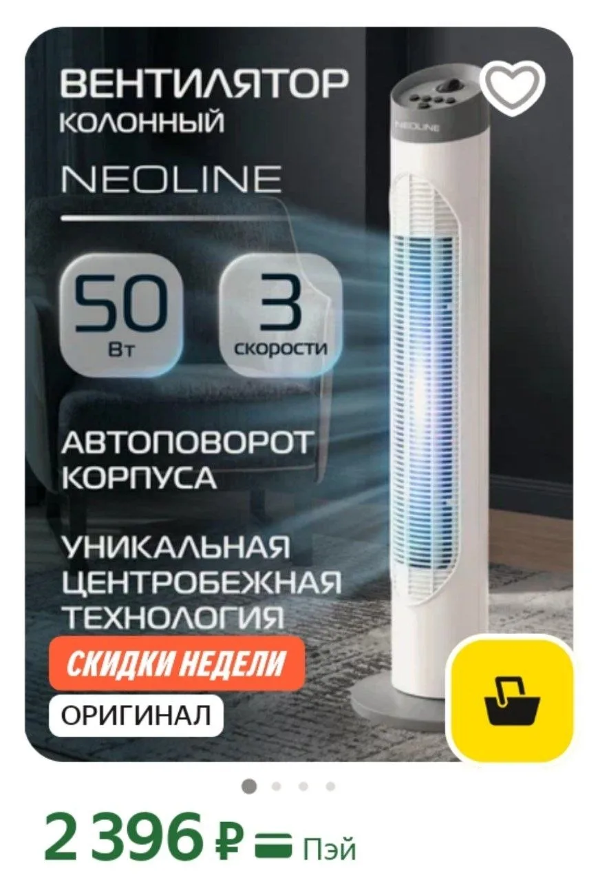 Вентилятор колонный NEOLINE CHILL NFT-505W, 3 режима работы