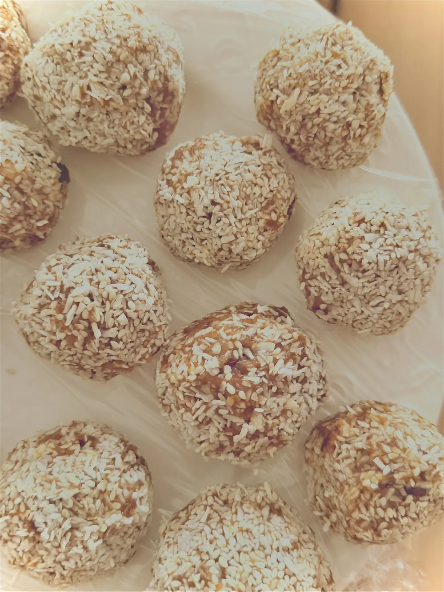• Обваляйте их в кокосовой стружке и кунжуте.