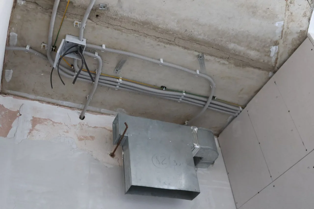 Уже отремонтировано 8 из 12 отделений областной больницы. Сейчас полным ходом ведутся работы в хирургическом отделении. На объекте ежедневно трудится бригада из восьми человек. Завершается монтаж электрики, которая будет полностью приспособлена для подключения современного медицинского оборудования. Инженерные сети готовы на 80%. По сантехнике степень готовности 95%, осталась лишь чистовая работа — монтаж финальных элементов.