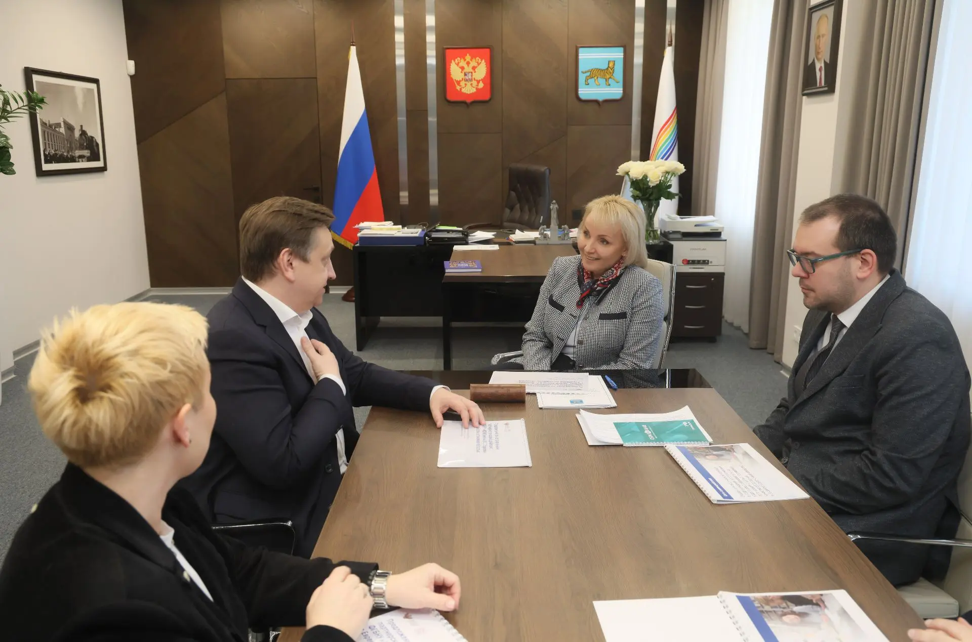 🔹На совещании в Министерстве строительства и ЖКХ России вместе с заместителем министра Алексеем Васильевичем Ересько рассмотрели текущие вопросы участия нашей области в федеральных проектах и инвестиционных программах. В центре внимания — модернизация инфраструктуры и переселение из аварийного жилья. Поставила перед правительством ЕАО задачу максимально ускорить запуск работ, запланированных на текущий год.