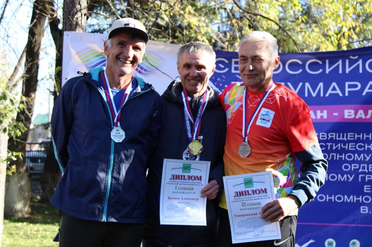 Спортсмены соревновались на трех дистанциях. Руслан Ищенко из Хабаровска стал первым в забеге на 21 км, воспитанник нашей спортивной школы Никита Козырев из Биробиджана — на 10 км, Артем Наход из Комсомольска-на-Амуре — на 5 км.