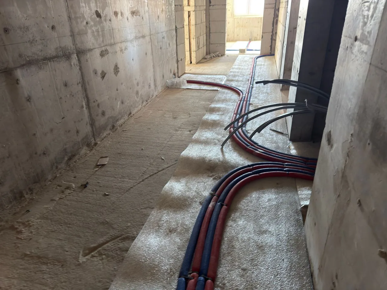 В ноябре сообщала о начале нового этапа стройки — переходе от общестроительных к внутренним работам. Сейчас подрядчик полностью завершил кладку перегородок на всех этажах, на 75 процентов выполнил монтаж систем водоснабжения и водоотведения во всех трех корпусах жилого комплекса. К самому зданию подведены наружные сети водопровода, канализации и отопления.