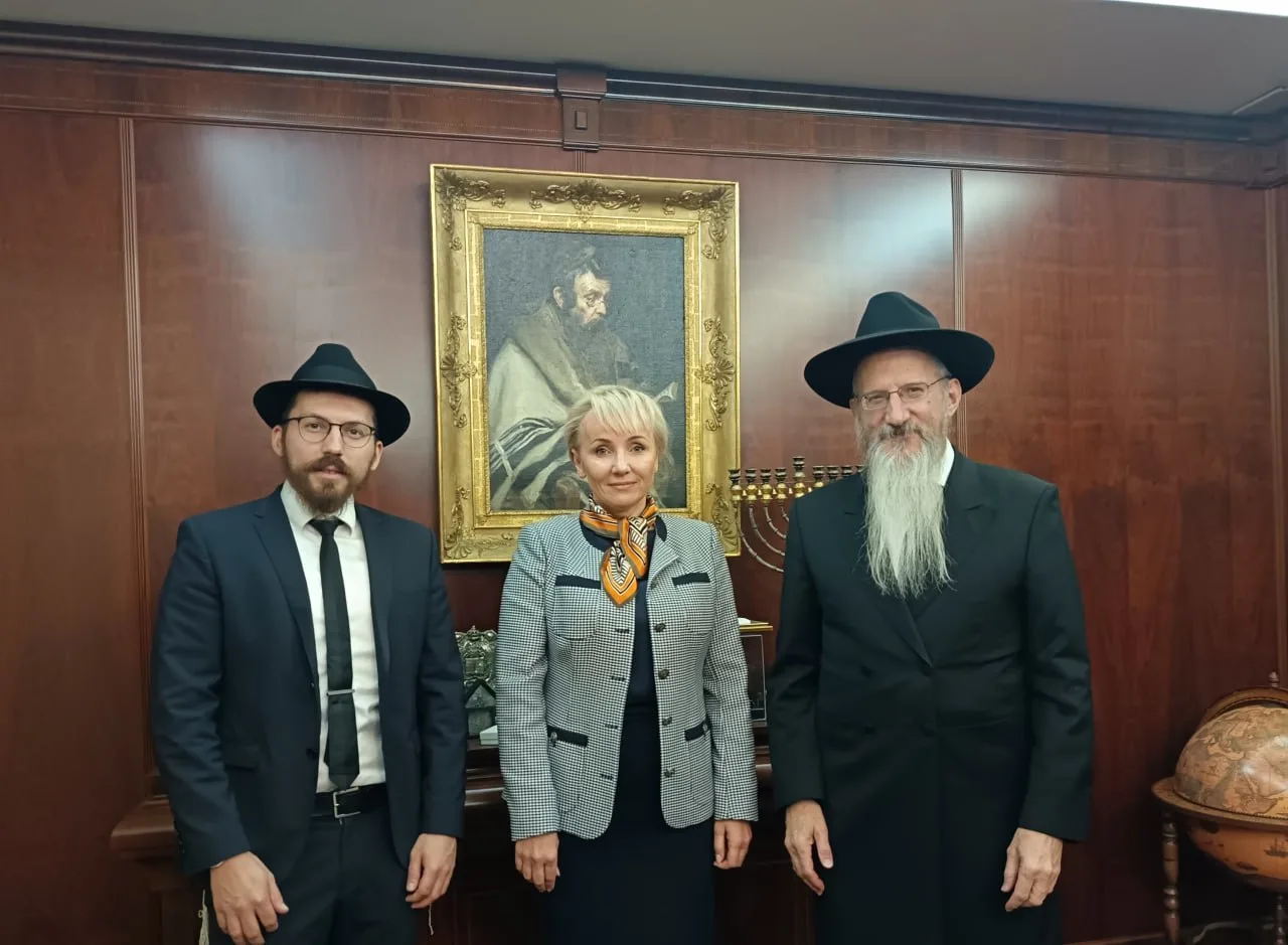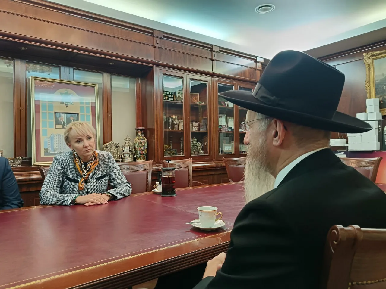 Во время рабочей поездки в Москву вместе с главным раввином автономии Эфраимом Колпаком встретилась с главным раввином России Берлом Лазаром.