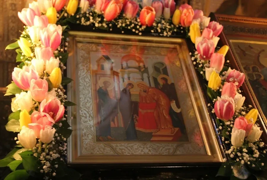 «Радуйся, Благодатная Богородице Дево, из Тебе бо возсия Солнце правды, Христос Бог наш, просвещаяй сущия во тьме; веселися и ты, старче праведный, приемый во объятия Свободителя душ наших, дарующаго нам воскресение».