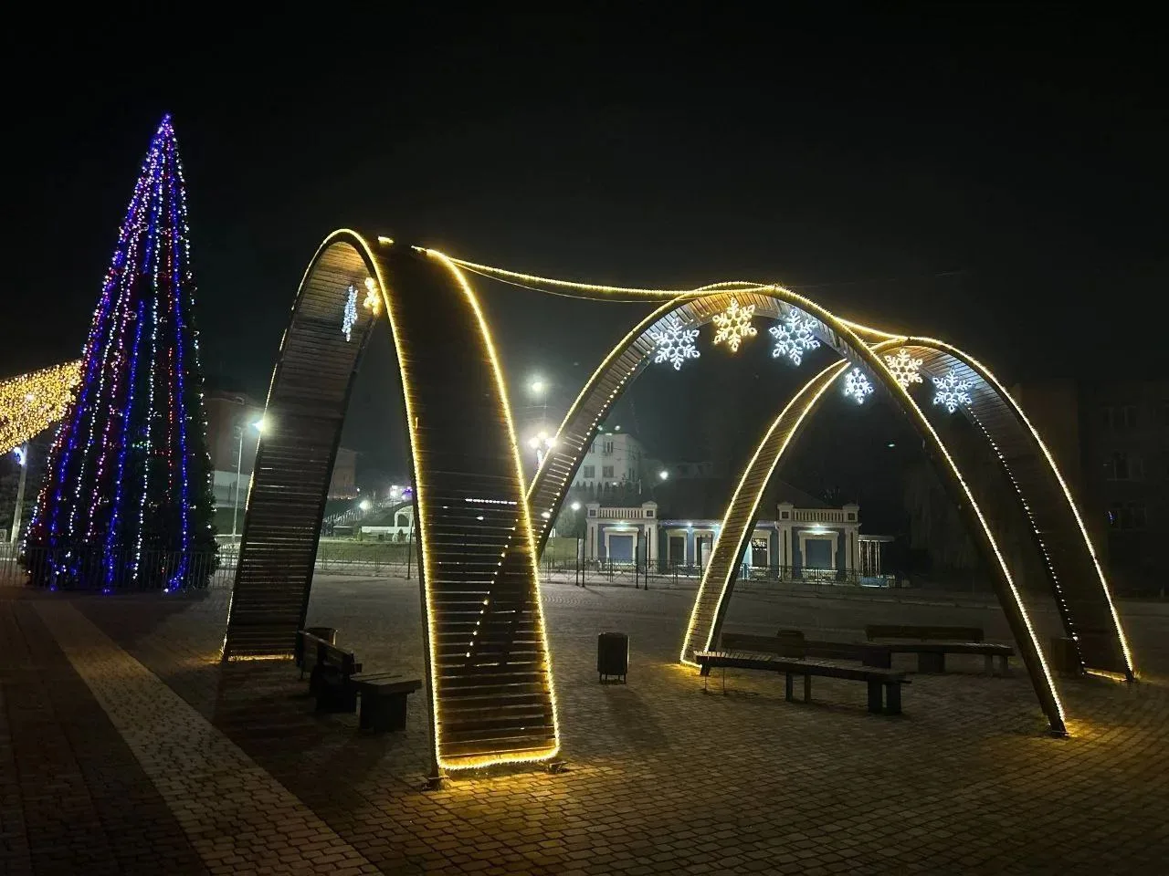 Украшена площадь Победы и набережная. Также в районном центре установили главную ёлку.