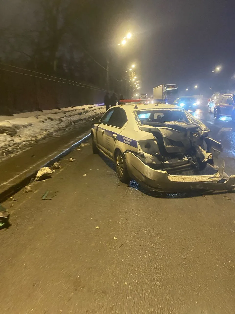 В легковом автомобиле находились дети в возрасте 9 месяцев и 8 лет — оба получили легкий вред здоровью. Среди пострадавших также трое сотрудников полиции: одного госпитализировали, двое других направлены на амбулаторное лечение.