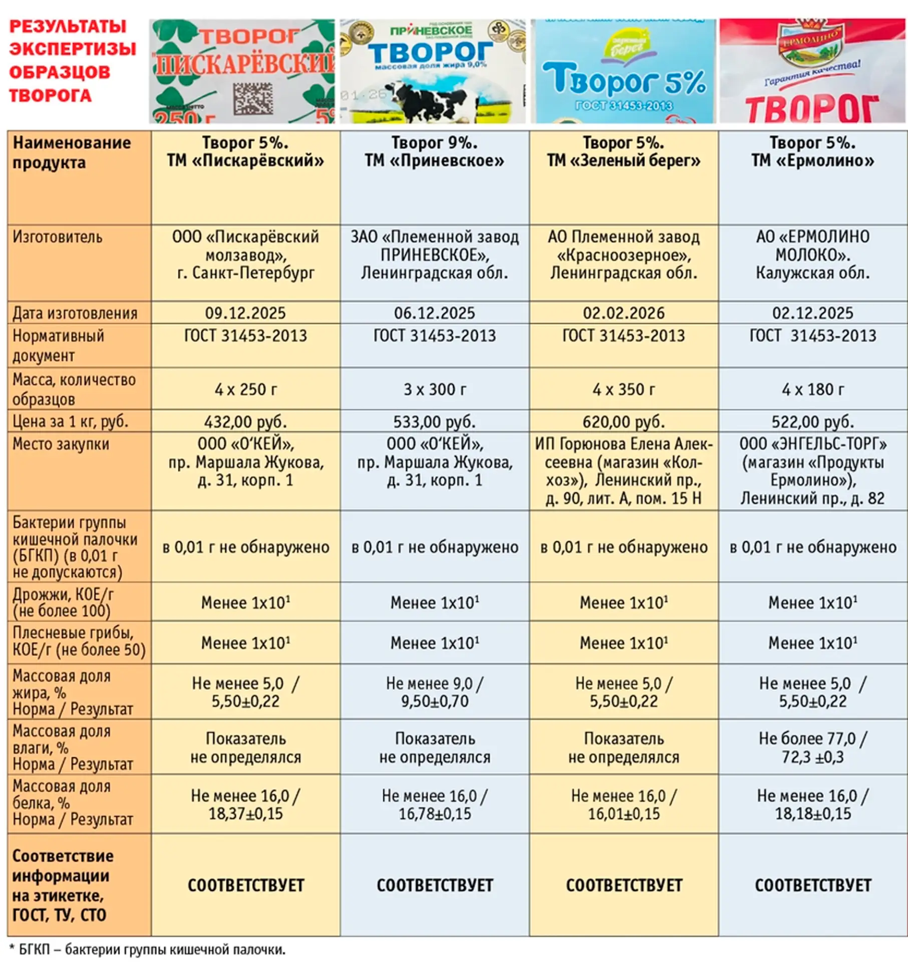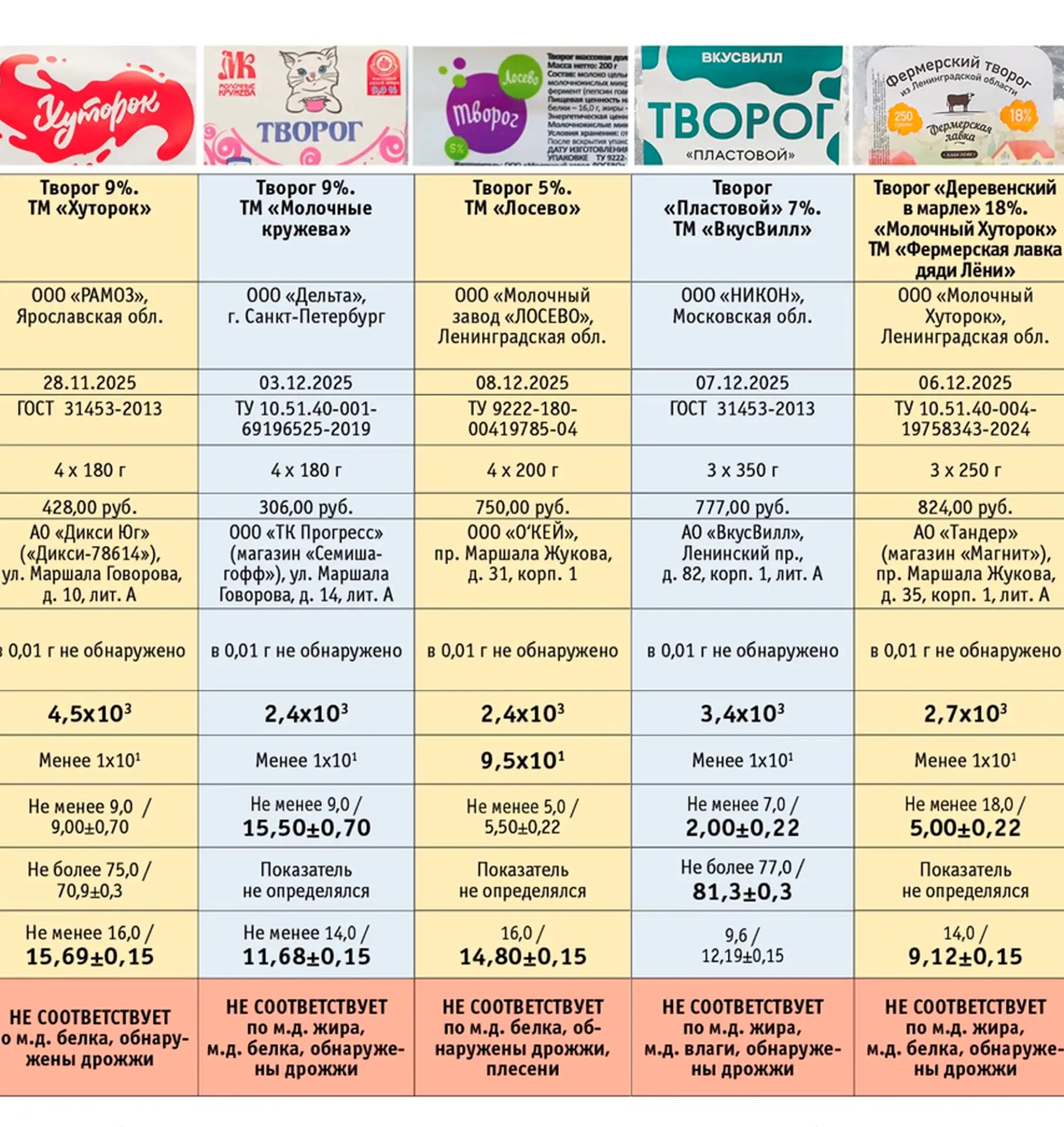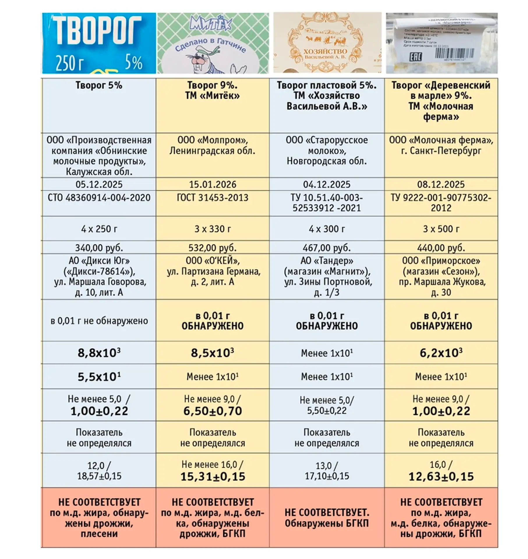 «Общественный контроль» проверил 13 образцов творога в петербургских магазинах: 9 не прошли проверку, в трёх нашли кишечную палочку, а жирность пяти оказалась в разы ниже заявленной.
