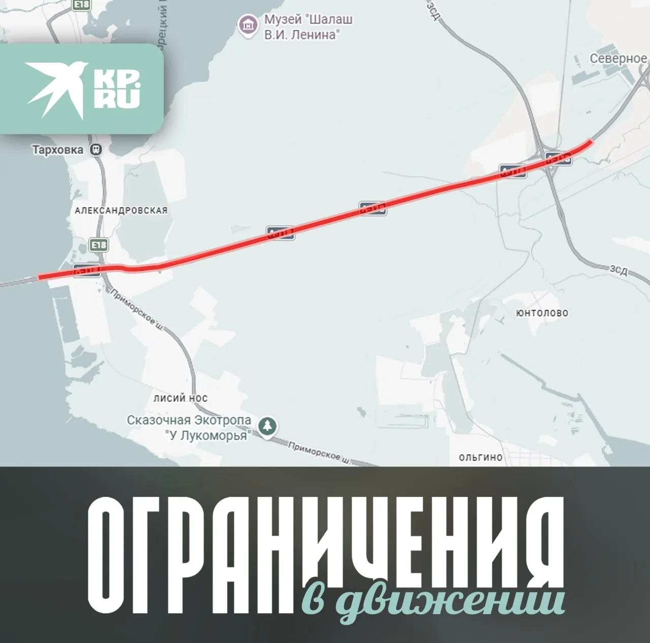 10 км внешнего кольца между ЗСД и Приморским шоссе закрыты, поток перевели на внутреннее кольцо — по полосе на каждое направление.