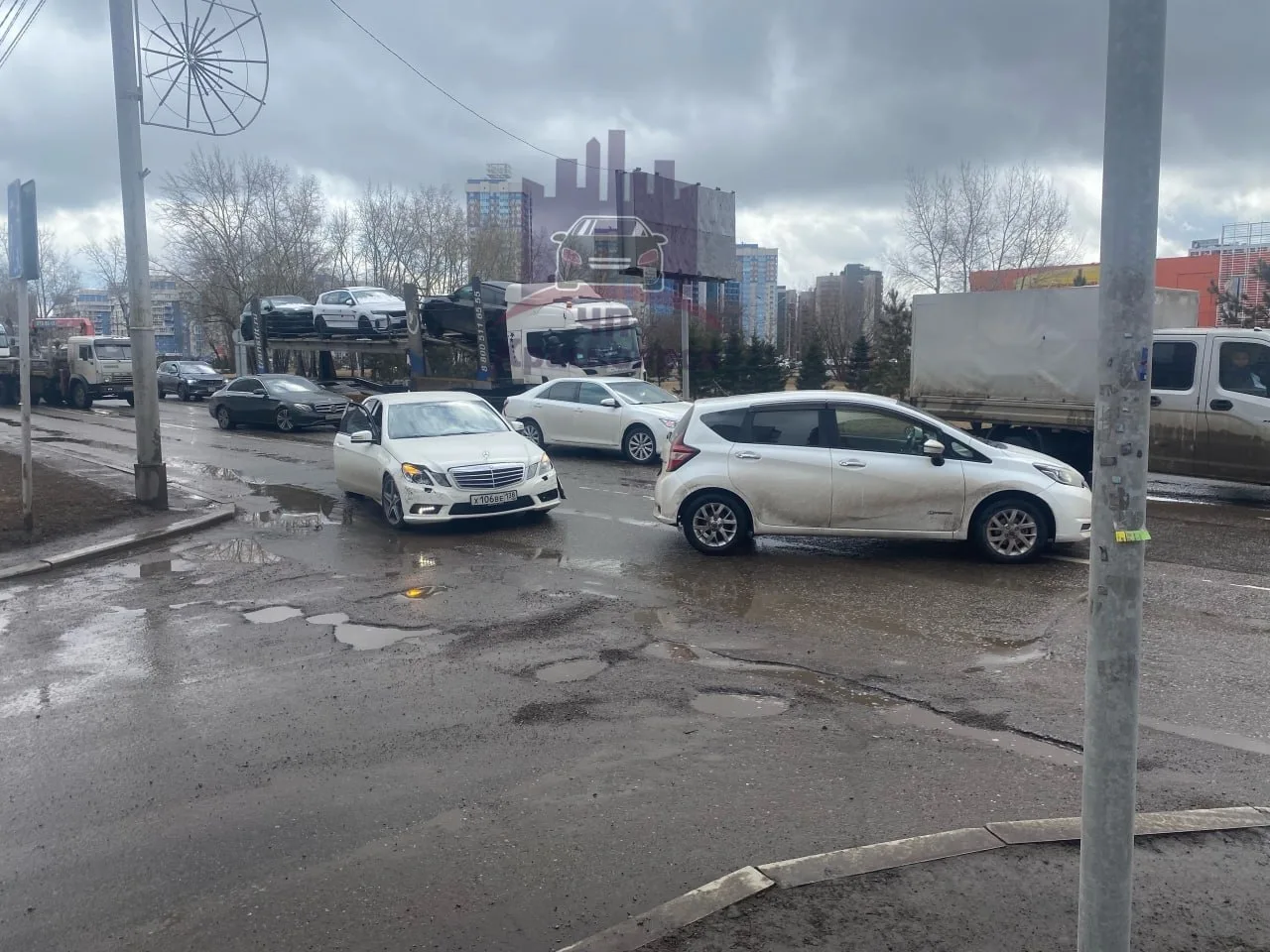 Авиаторов. Водитель Мерседеса решил устроить шашки на дороге, но очень быстро проиграл. Вину свою не признаёт. До прибытия сотрудников ГАИ он снимал тонировку с передних стекол.