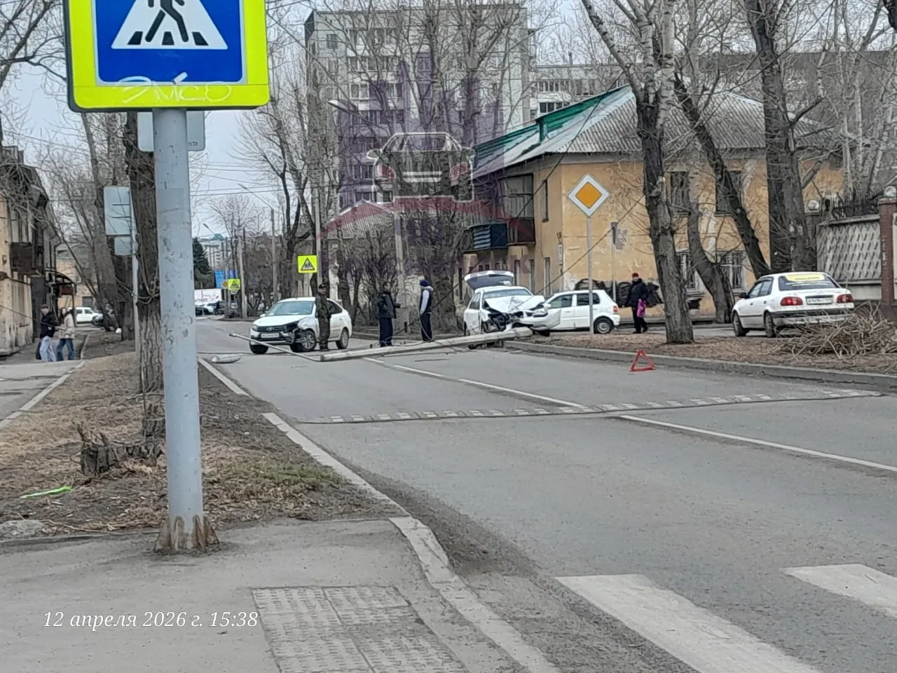 В результате ДТП на перекрёстке улиц Львовской и Турбинной с участием двух легковых автомобилей произошло обрушение опоры освещения. Столб упал на проезжую часть, движение частично затруднено.
