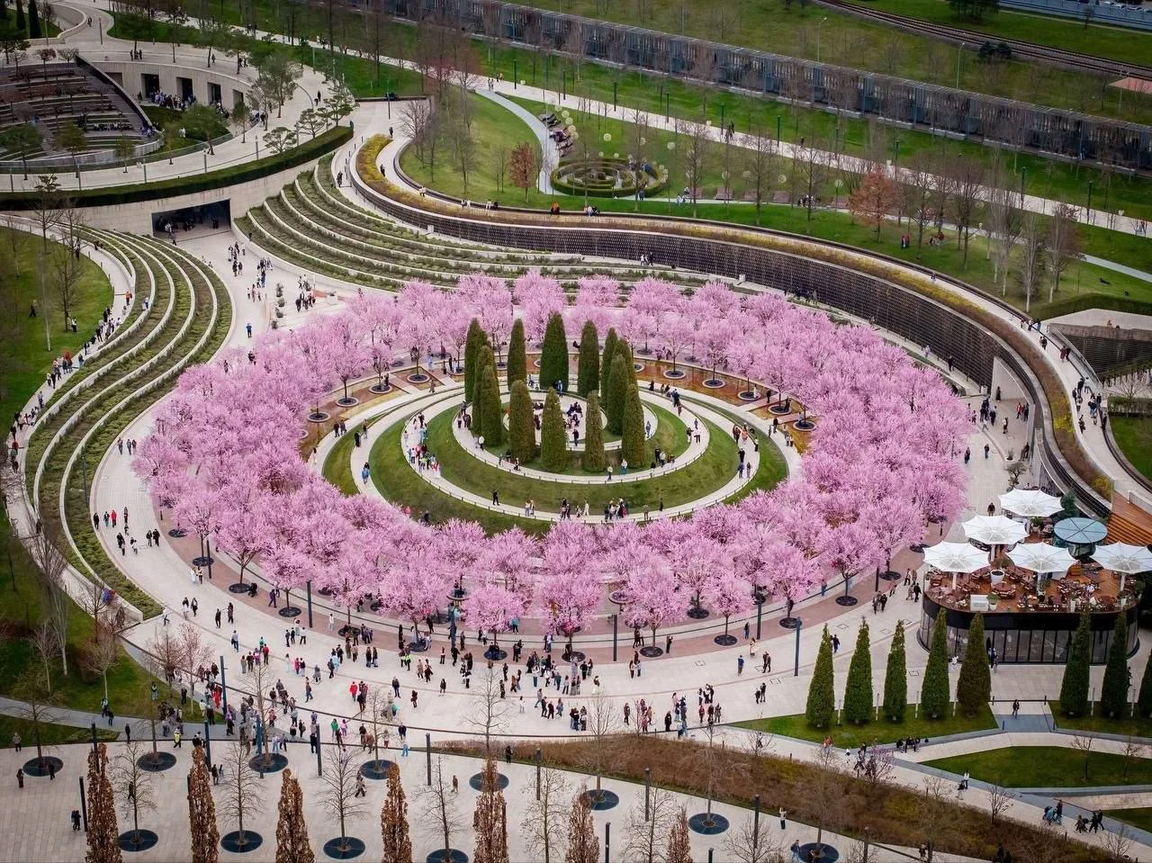 Цветение сливы в парке Галицкого с высоты. Потрясающе. 😍