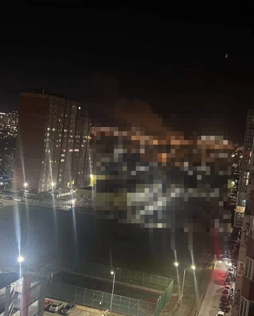 Обломки рухнули в жилом районе возле Романовской гимназии. Осколки повредили газовую трубу — вспыхнул пожар. Рядом находятся гаражи и многоэтажки, поэтому фрагменты посекли восемь машин, а в домах разбились окна.