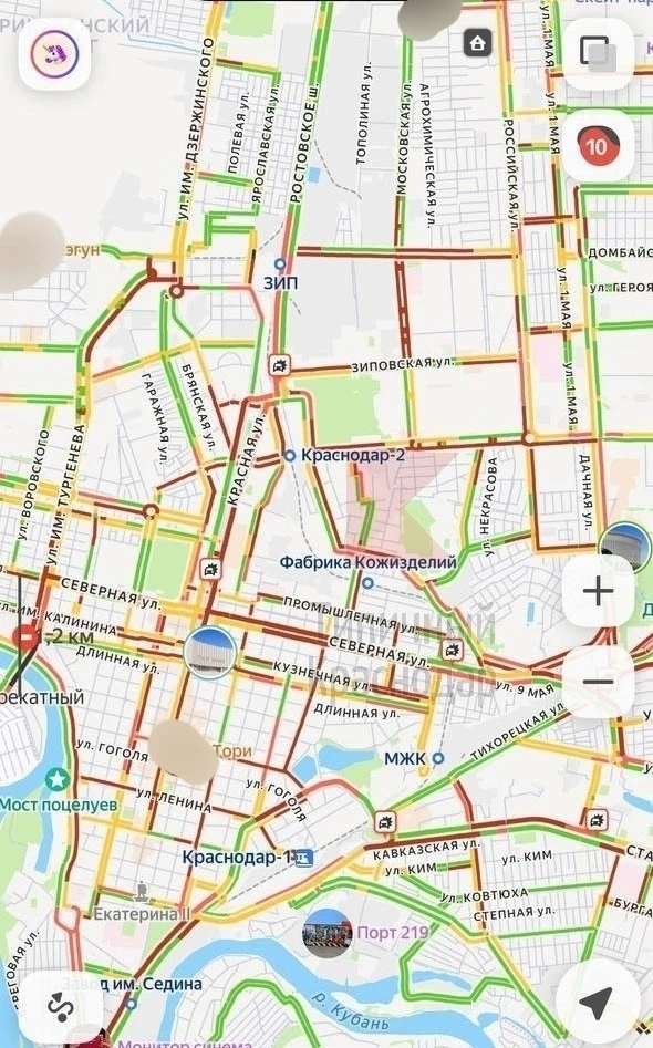 В Краснодаре образовались 10-бальные пробки 10 баллов