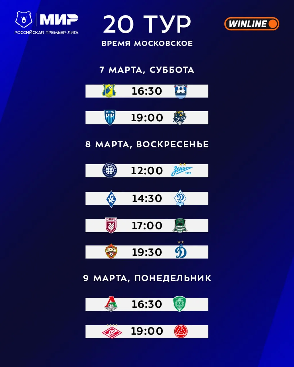 Вашему вниманию расписание РПЛ на первые туры 2026 года