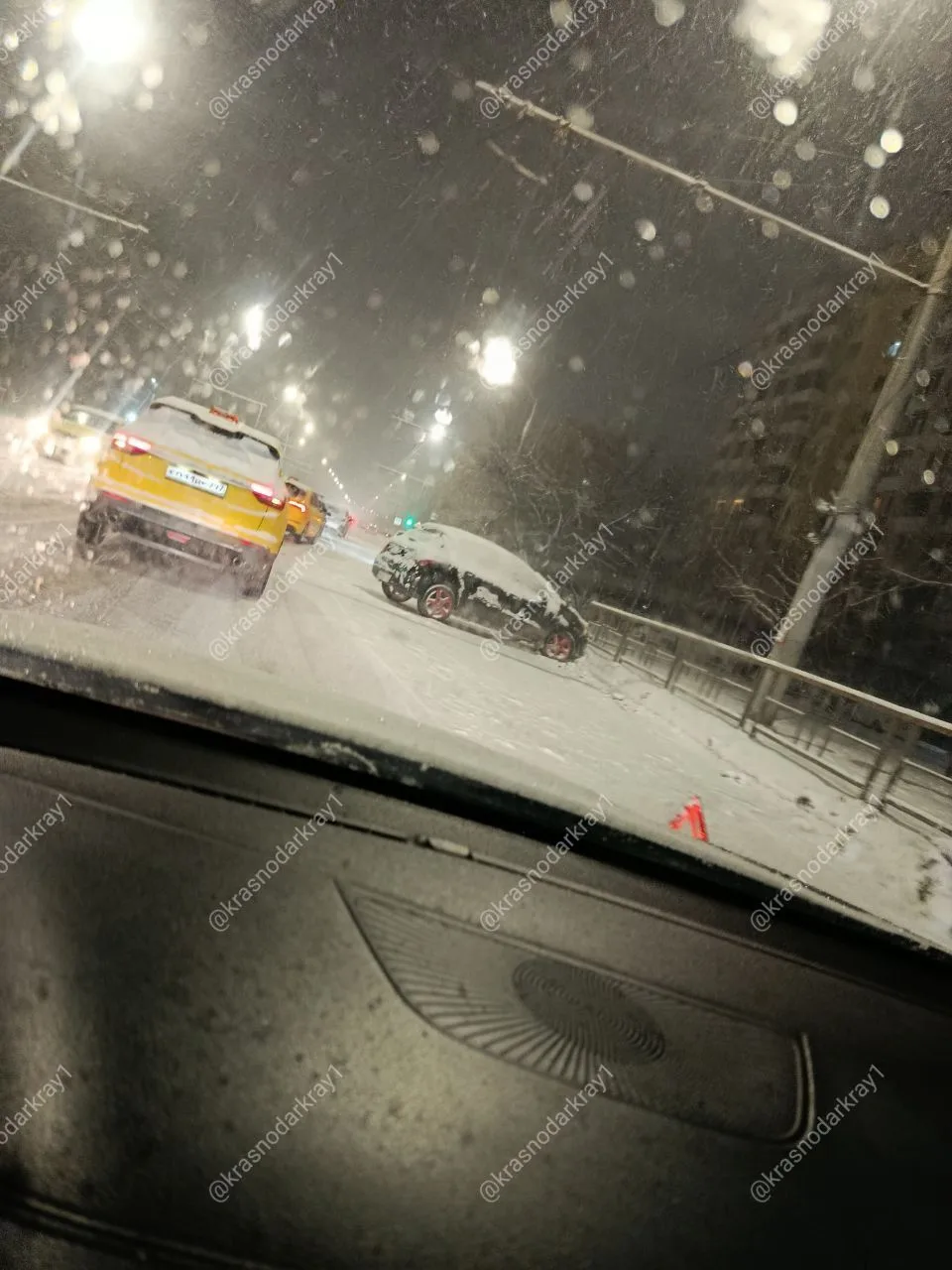 Краснодар прямо сейчас заметает снегом