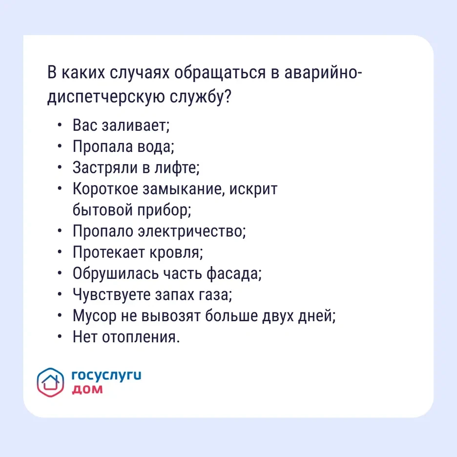 Прорвало трубу или пропал свет? Не тратьте время на поиск нужных номеров — связывайтесь с аварийно-диспетчерской службой в приложении «Госуслуги Дом».