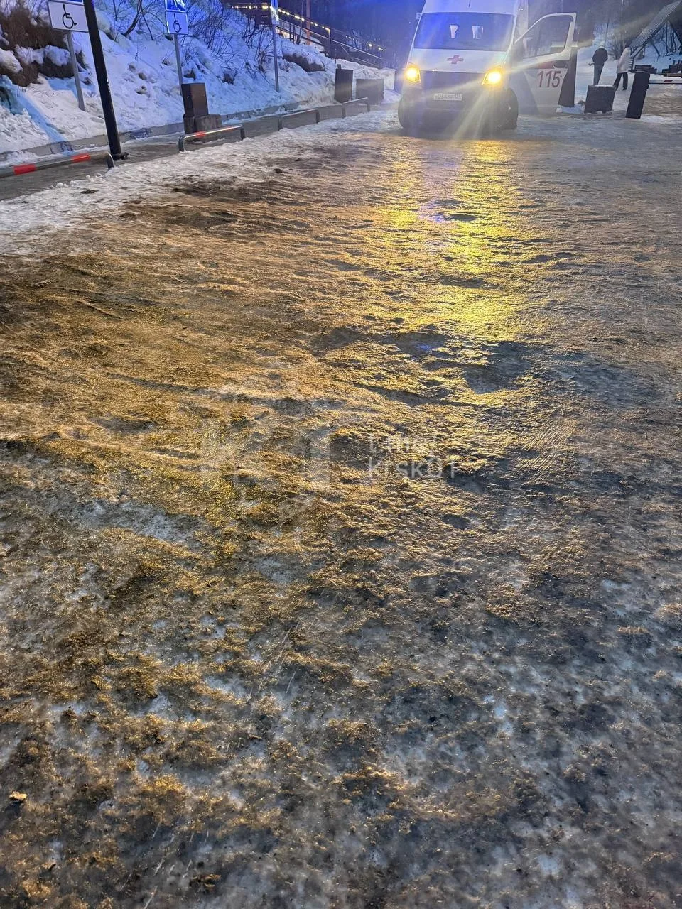 После потепления, а следом похолодания, пешеходные дорожки — сплошной каток.