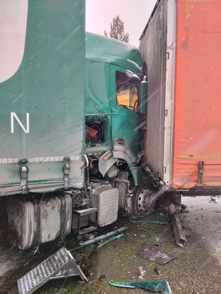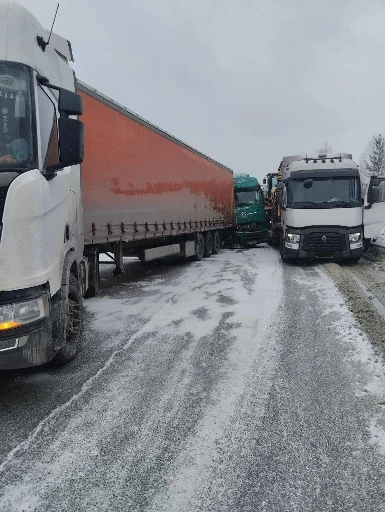 На 754 километре трассы Р-255 «Сибирь» занесло легковушку и машина врезалась в отбойник. Фура, следовавшая за ней, успела затормозить, но в неё врезался другой большегруз.