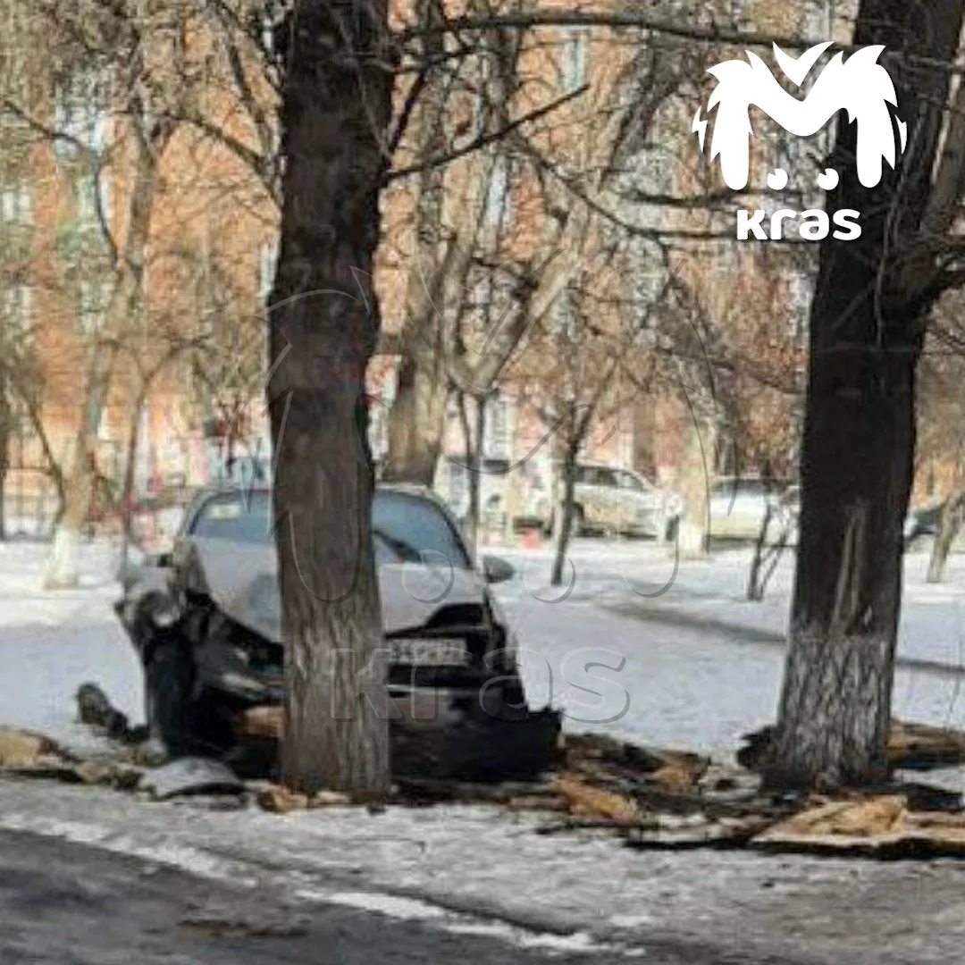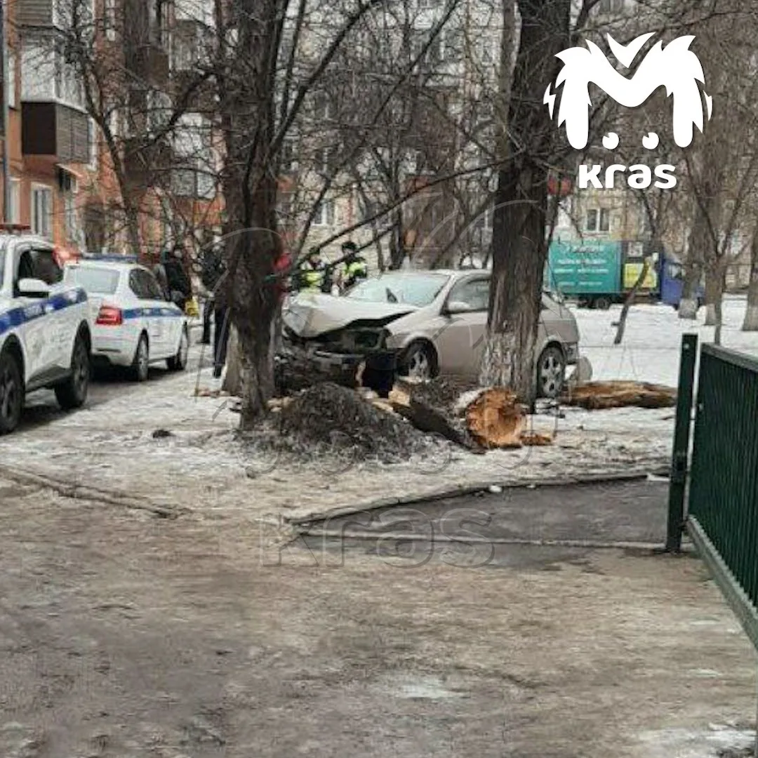 Иномарка снесла дерево и загорелась во дворе на Крас рабе.