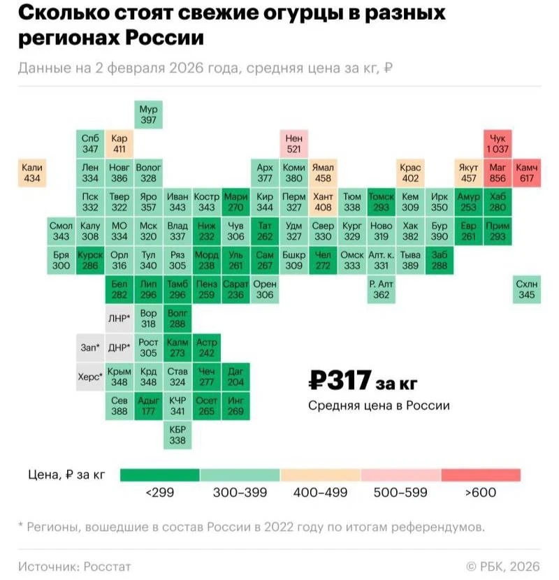 🥒 Огурцы дороже бананов оказались в Красноярске