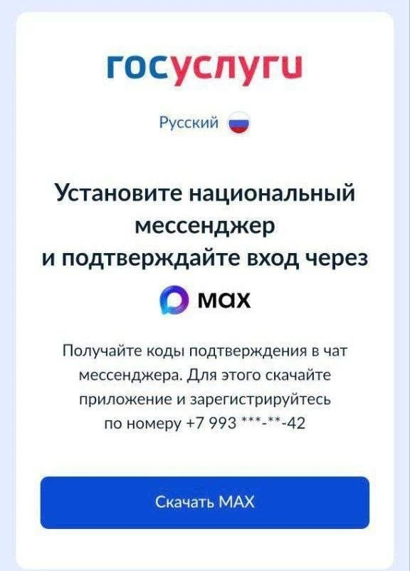 ❗️ На Госуслуги больше нельзя войти без наличия национального мессенджера МAХ