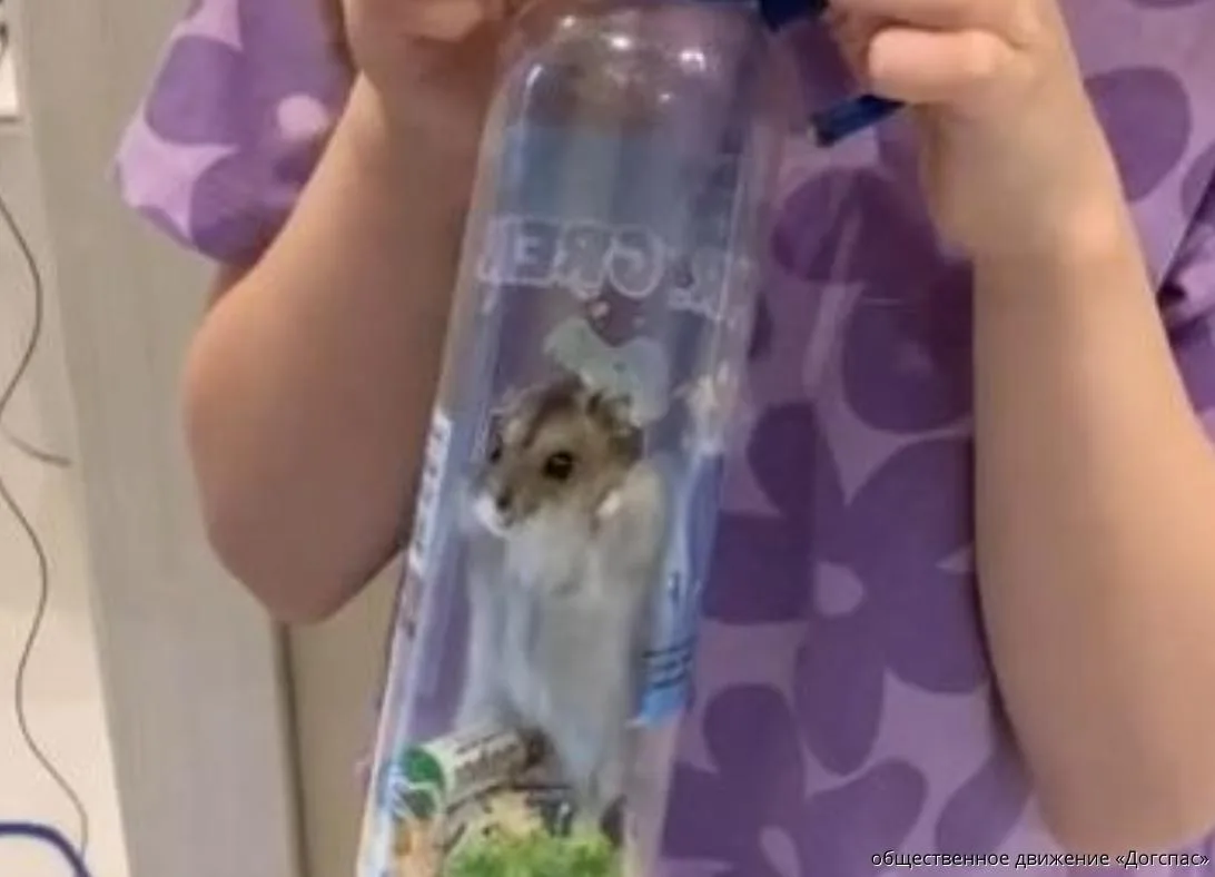 Спасатели из «Догспаса» спустили в шахту камеру, нашли зверька и придумали план: опустили вниз бутылку с кормом. Хомяк забрался внутрь, после чего его аккуратно подняли наверх.