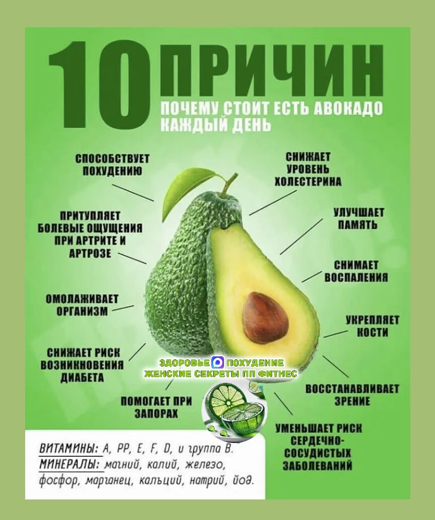 6. 🥑 Авокадо — повышает уровень глутатиона, помогая печени фильтровать вредные вещества.