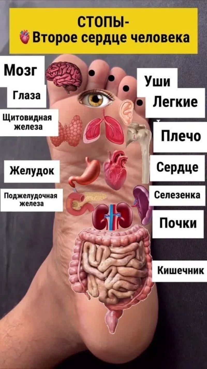 Рефлексология стоп, проекция органов на стопу.