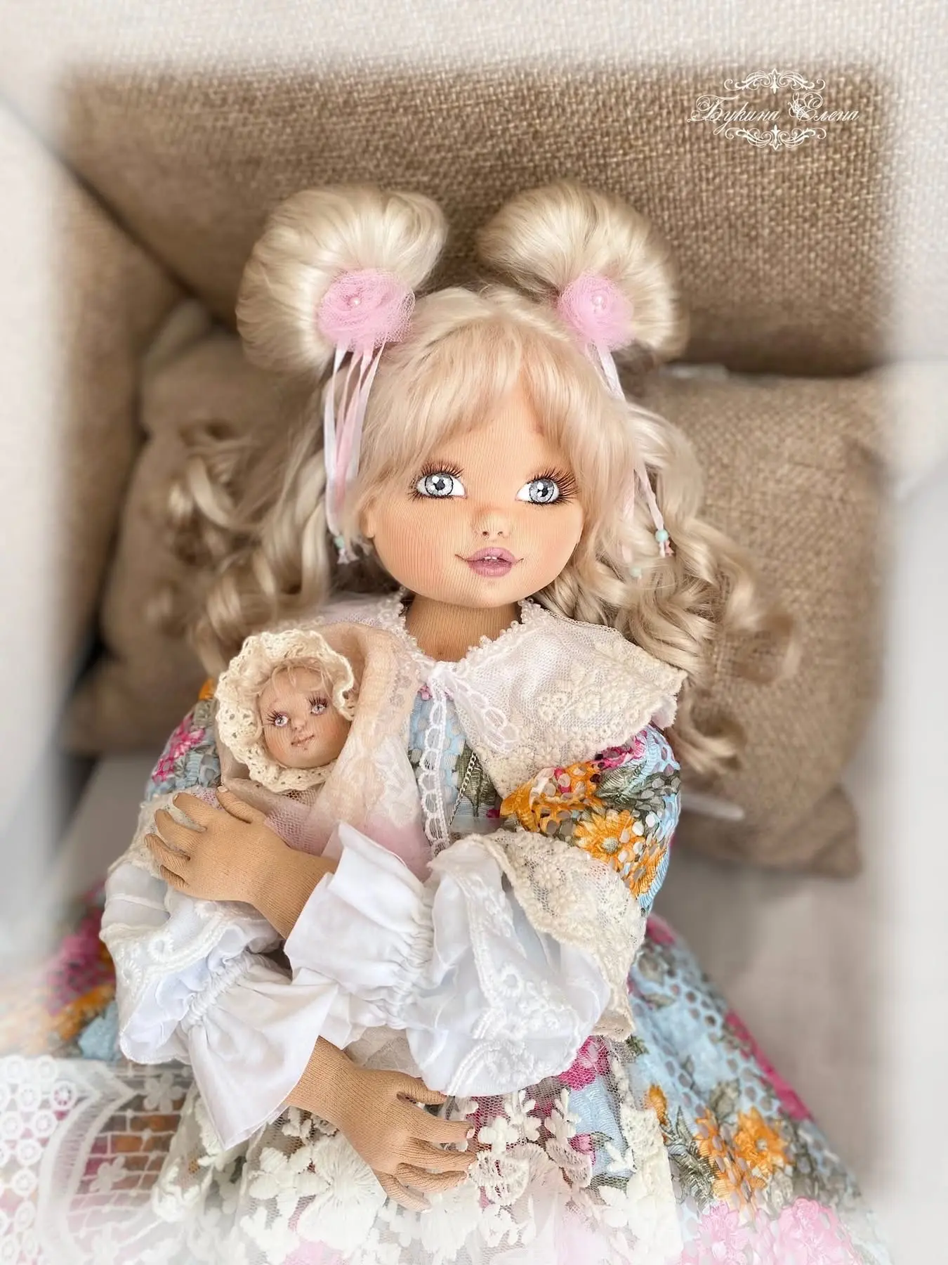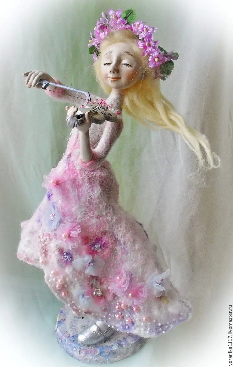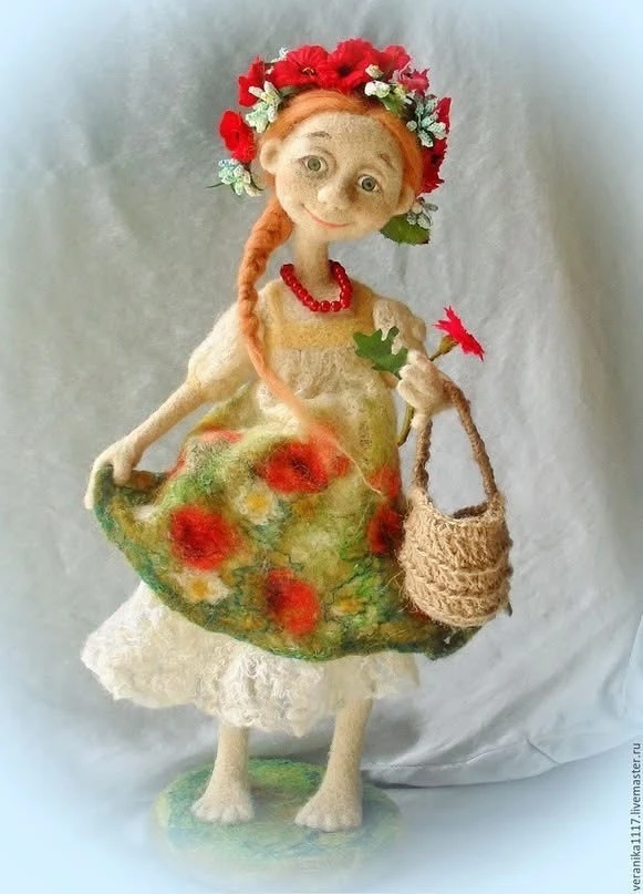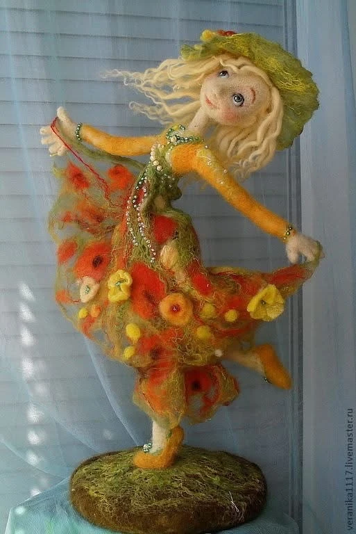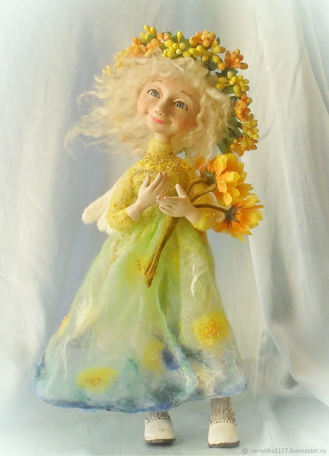 Ладолл, папье-маше, хлопок, художественное масло, масляная пастель, 23 см.