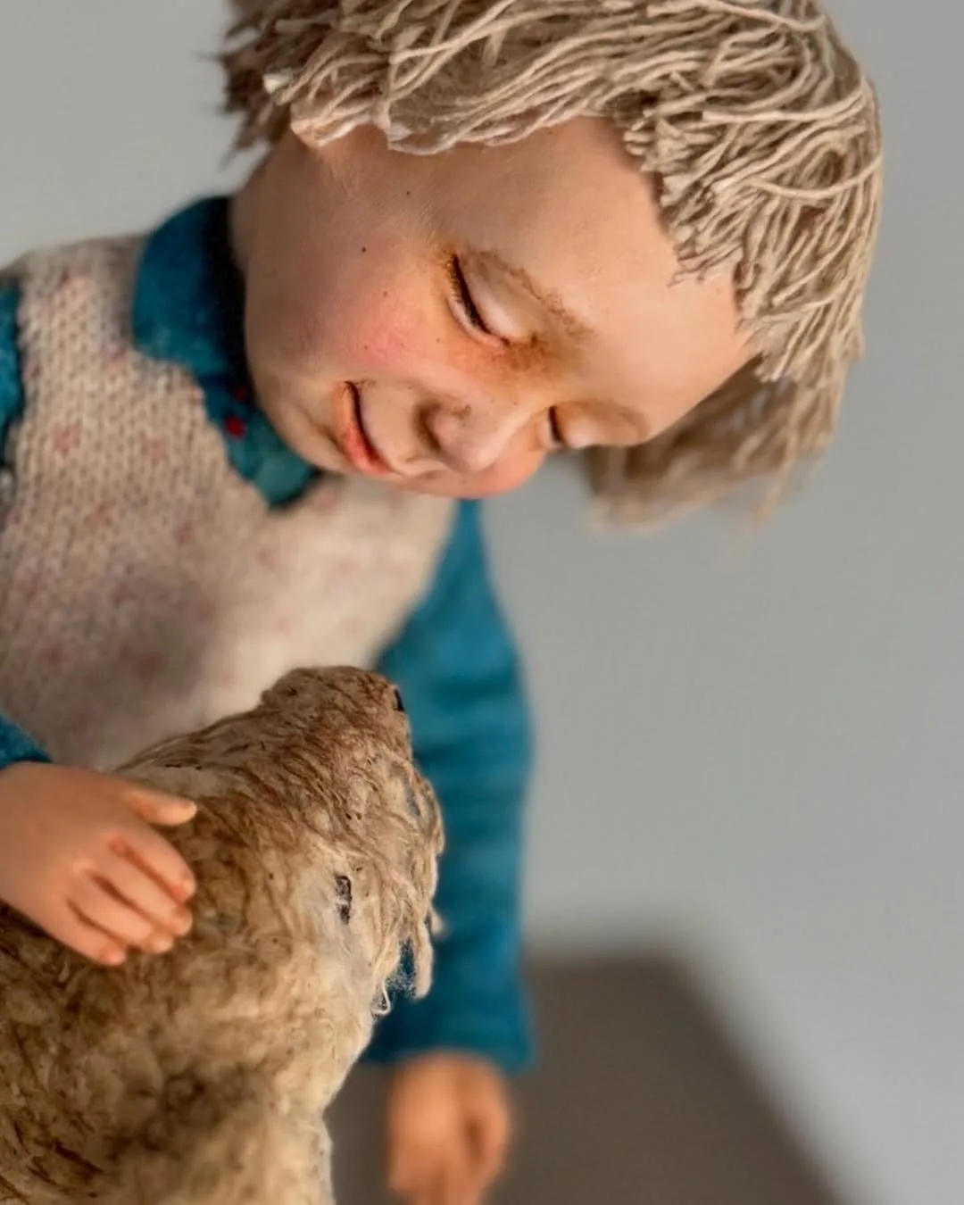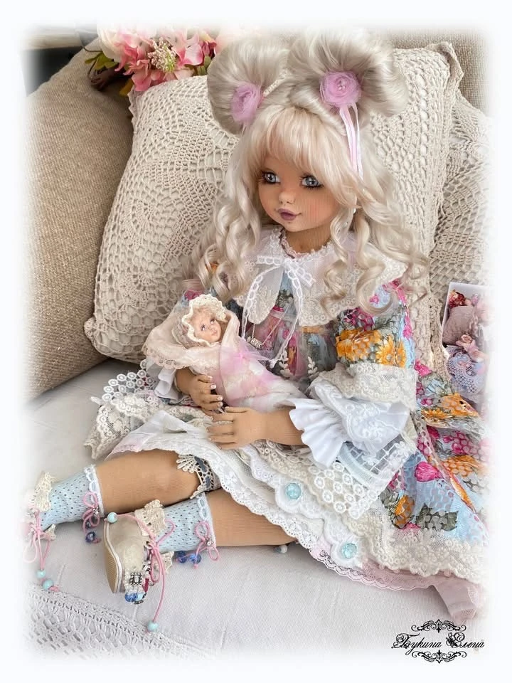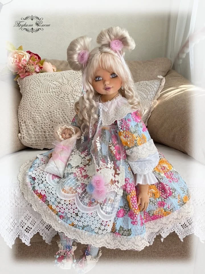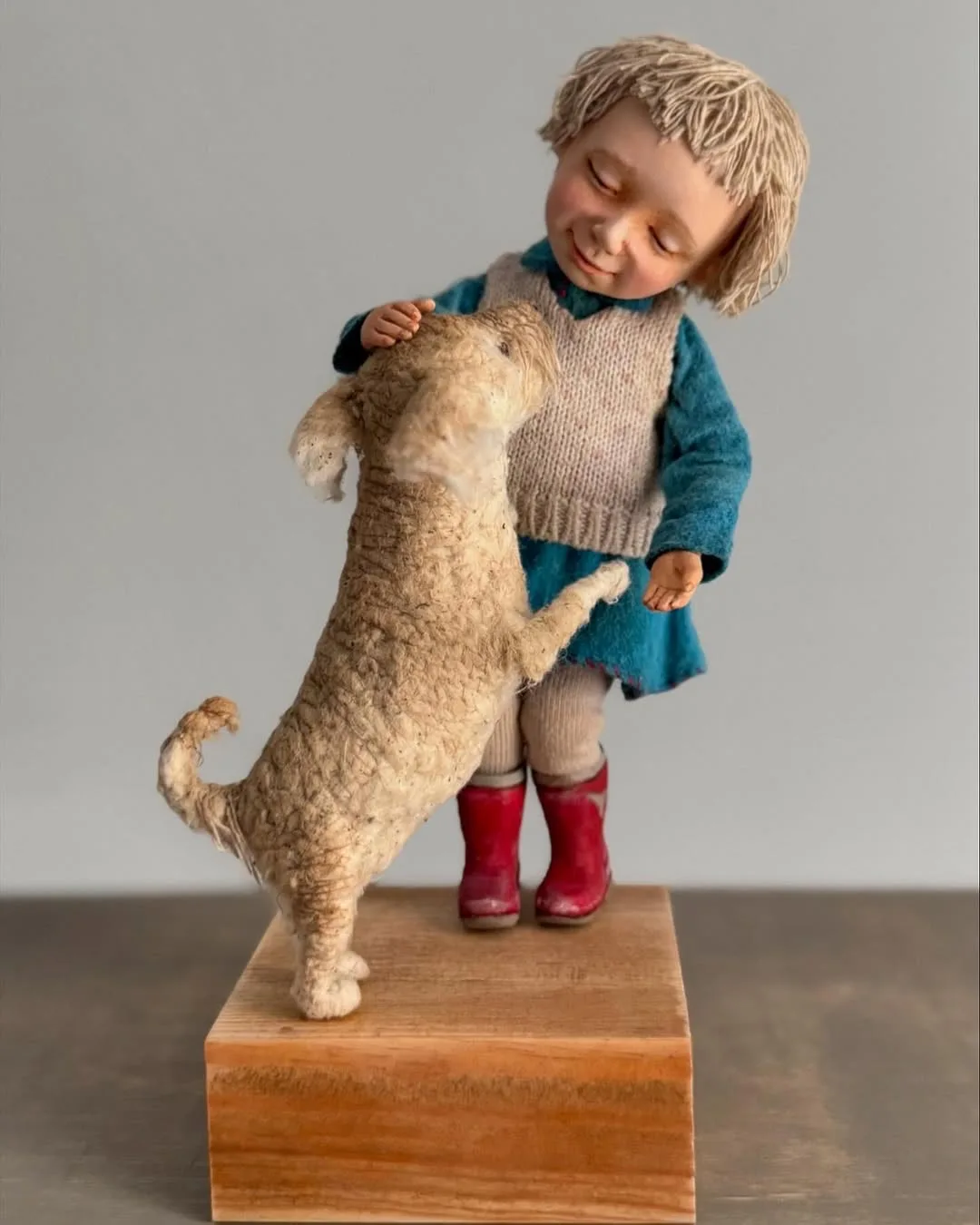 Ладолл, папье-маше, хлопок, художественное масло, масляная пастель, 23 см.